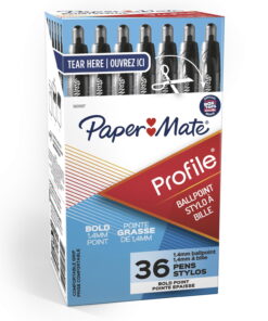 Retractable ballpoint pens provide 1.4mm super-bold, extra-smooth writing system. Comfort grip provides an effortless writing experience. Each pen unites the smooth feeling of a gel pen with a quick-drying, super-bold ink. Ink color matches the barrel color.