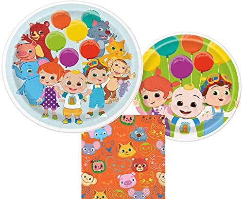 Peach State CoComelon Party Supplies Bundle with Dinner Plates, Cake Plates, and Napkins for 8 Guests
