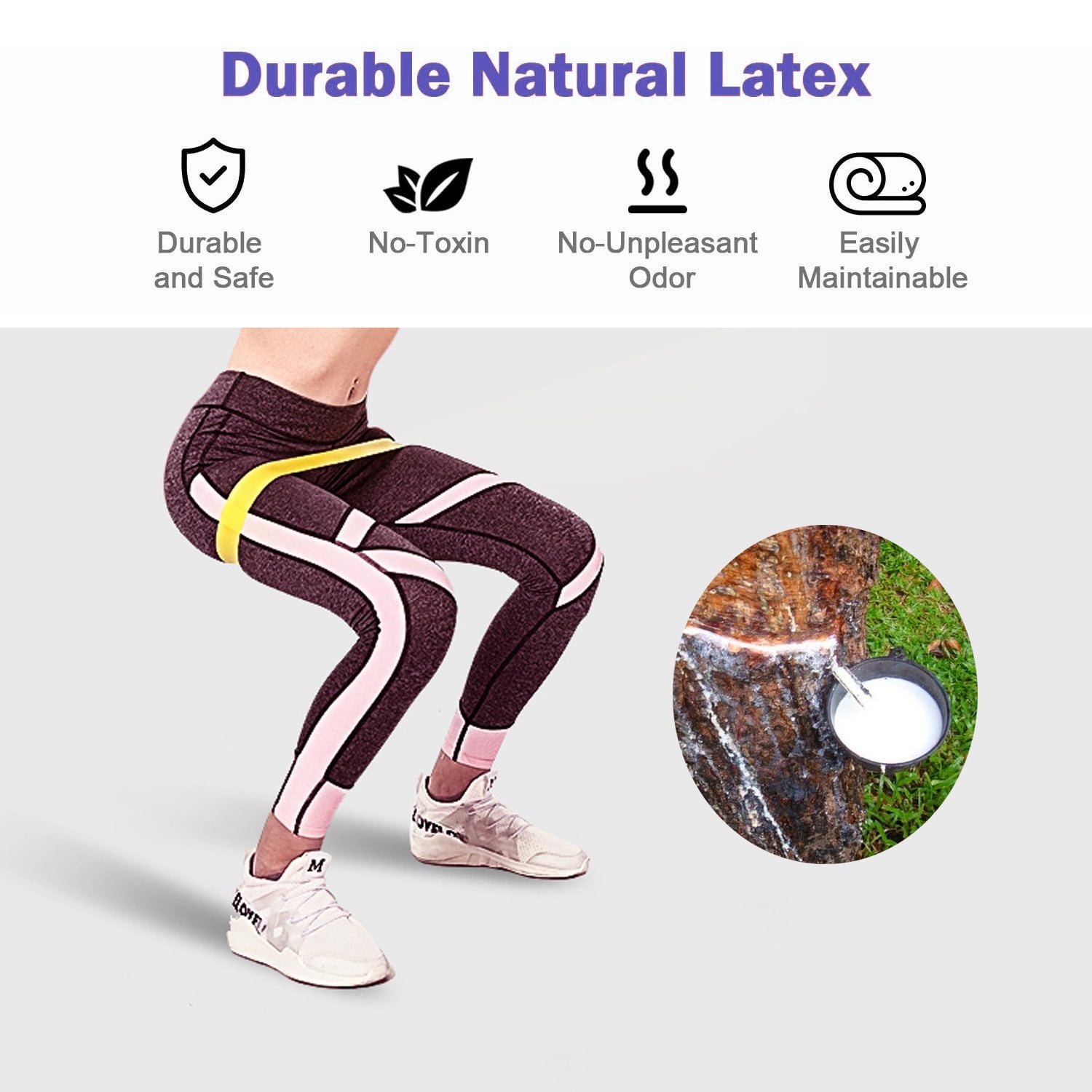 The resistance loop bands are made of 100% natural latex-free of non-natural Thermoplastic Elastomer (TPE). They are rigorously tested to be snap, stretch, and sweat resistant. You can feel the same resistance after a dozen reps there are five resistance bands together, so you can have multiple choices and combinations to find the perfect resistance for you. The resistance bands are fit for both men, women, fitness beginners, or trainers. They are lightweight and portable. You can use them at any time and anywhere you want.