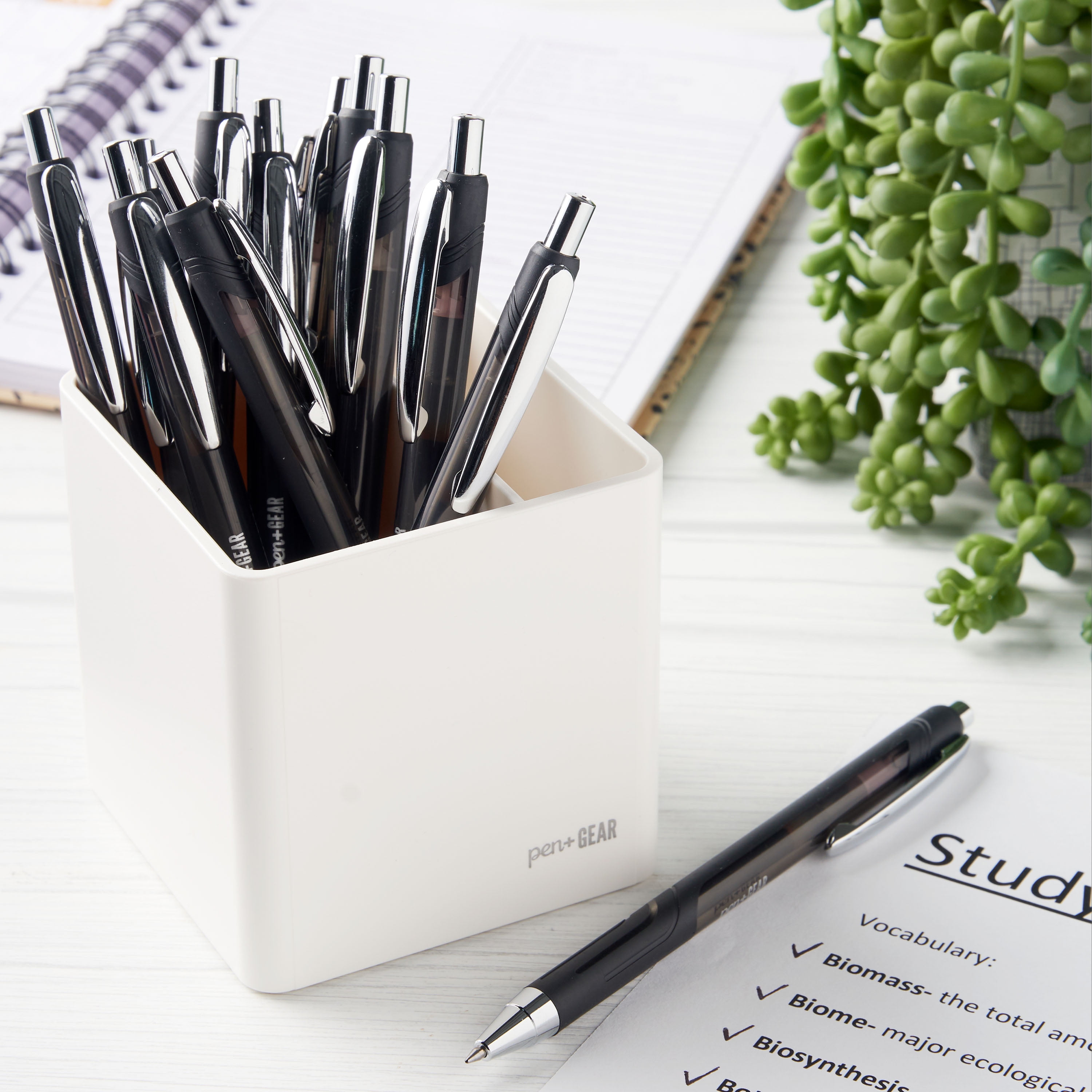 Take notes, do homework, and create literary masterpieces all with the use of our Pen+Gear Retractable Gel Pens. This pack contains 12 pens. Perfect for doodling, writing, labeling, and more, these pens have quick dry gel ink to help prevent smudging. A clicker on the top allows you to retract the tip to save ink and a pocket clip on the side makes it easy to carry and store so you can clip them onto pockets, binders, papers, and more. Give your desk a lively look and switch out your ordinary black ink pens with our Pen+Gear Retractable Gel Pens.
