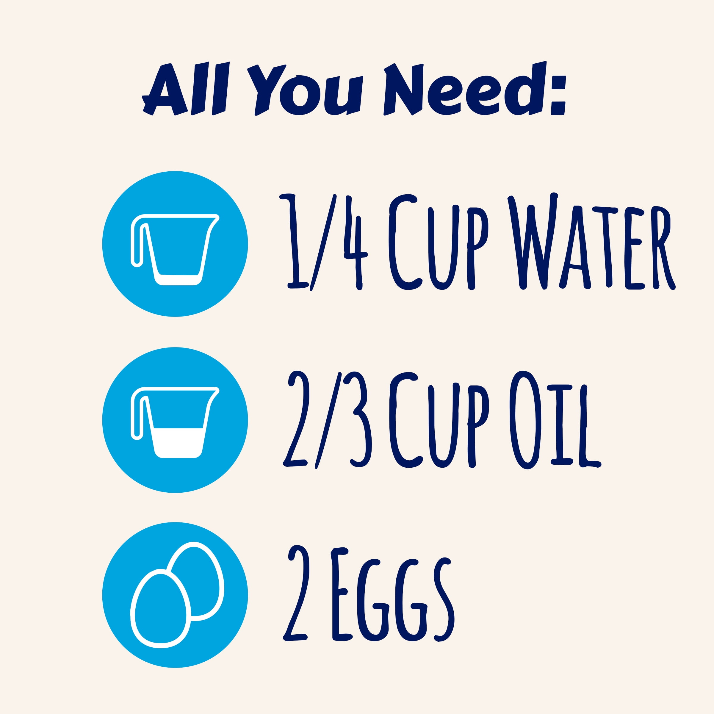 - Just add oil, water and two eggs to the dessert mix for ready-to-bake brownie batter