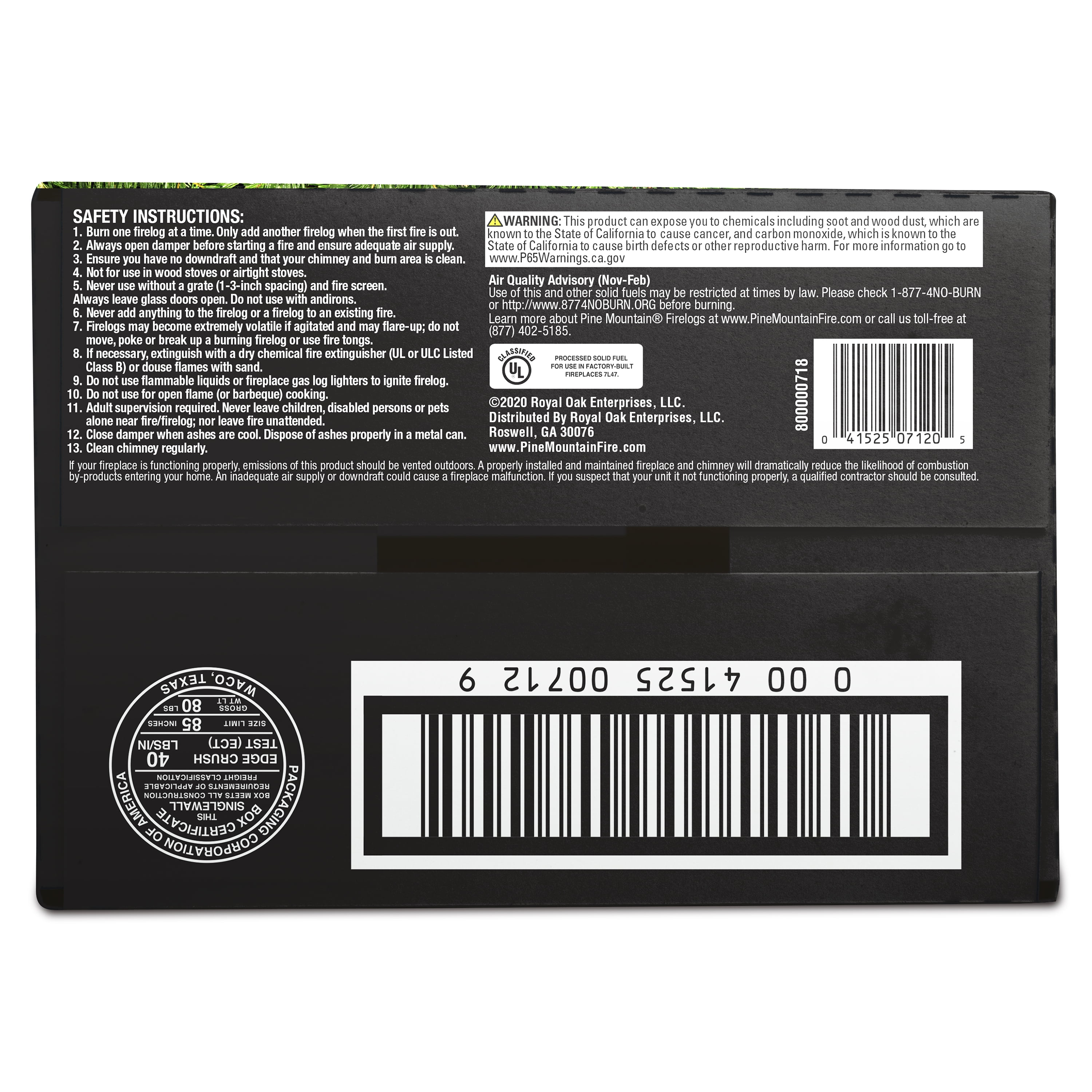 Enjoy the scent of a fresh evergreen forest with the new Pine Mountain Evergreen Forest Scented Firelog. Our Evergreen Forest scented log is the perfect replacement for firewood and burns just as hot. Simply light the package as per the instructions and enjoy a nice warm fire in less than 5 minutes. The Pine Mountain Evergreen Forest Scented Firelog is more convenient and relaxing than cordwood. Enjoy the wonderful flame you love and outdoor scent with the simple strike of a match.