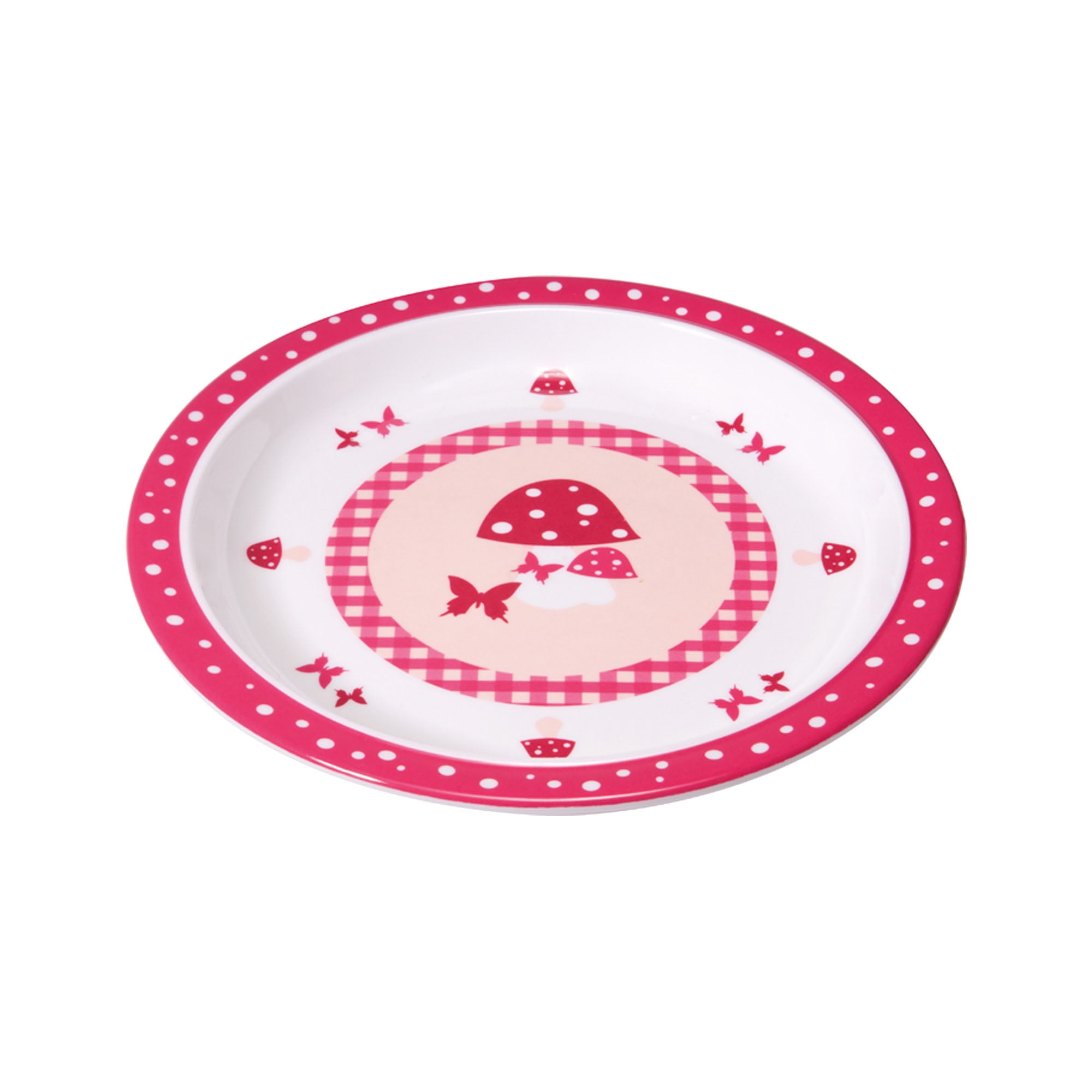 Matching dishes with different designs from the babies’ and children collection are the ideal addition to the tableware sets.Plate with silicone Mushroom magenta