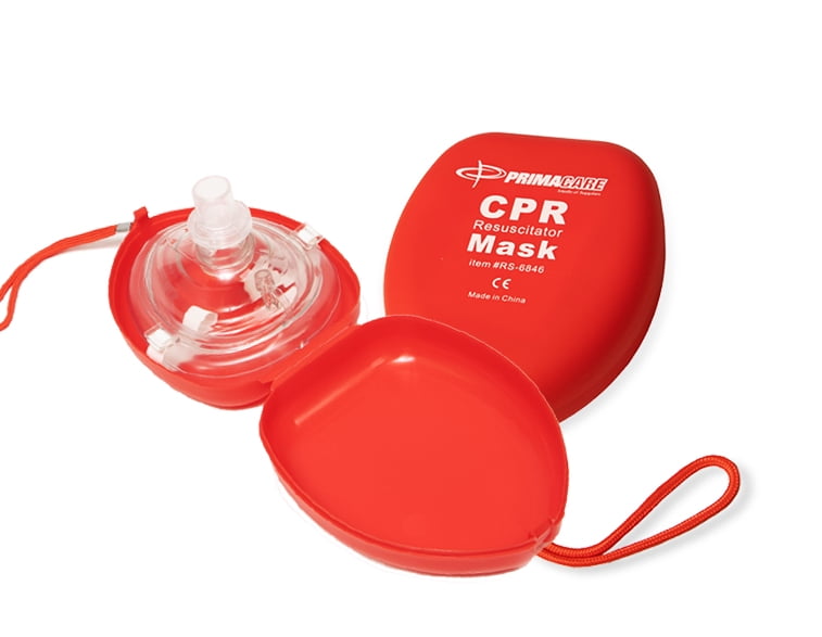 Primacare RS-6845-2WM Pack of 2 Single Valve CPR Rescue Mask in Red Hard Case, Adult/Child Pocket Resuscitator with Elastic Strap, Air Cushioned Edges, 6.5×4.8×1.6 inches