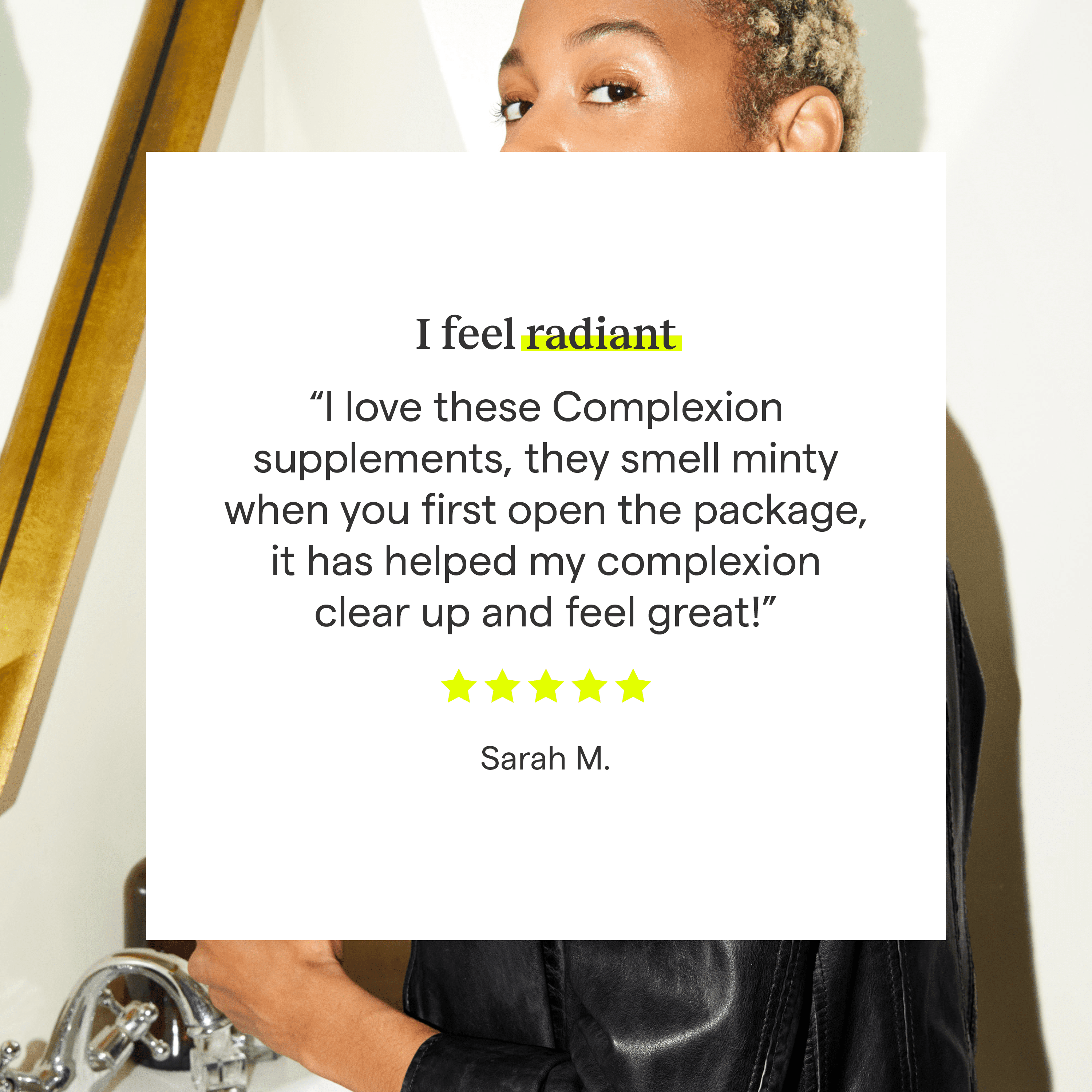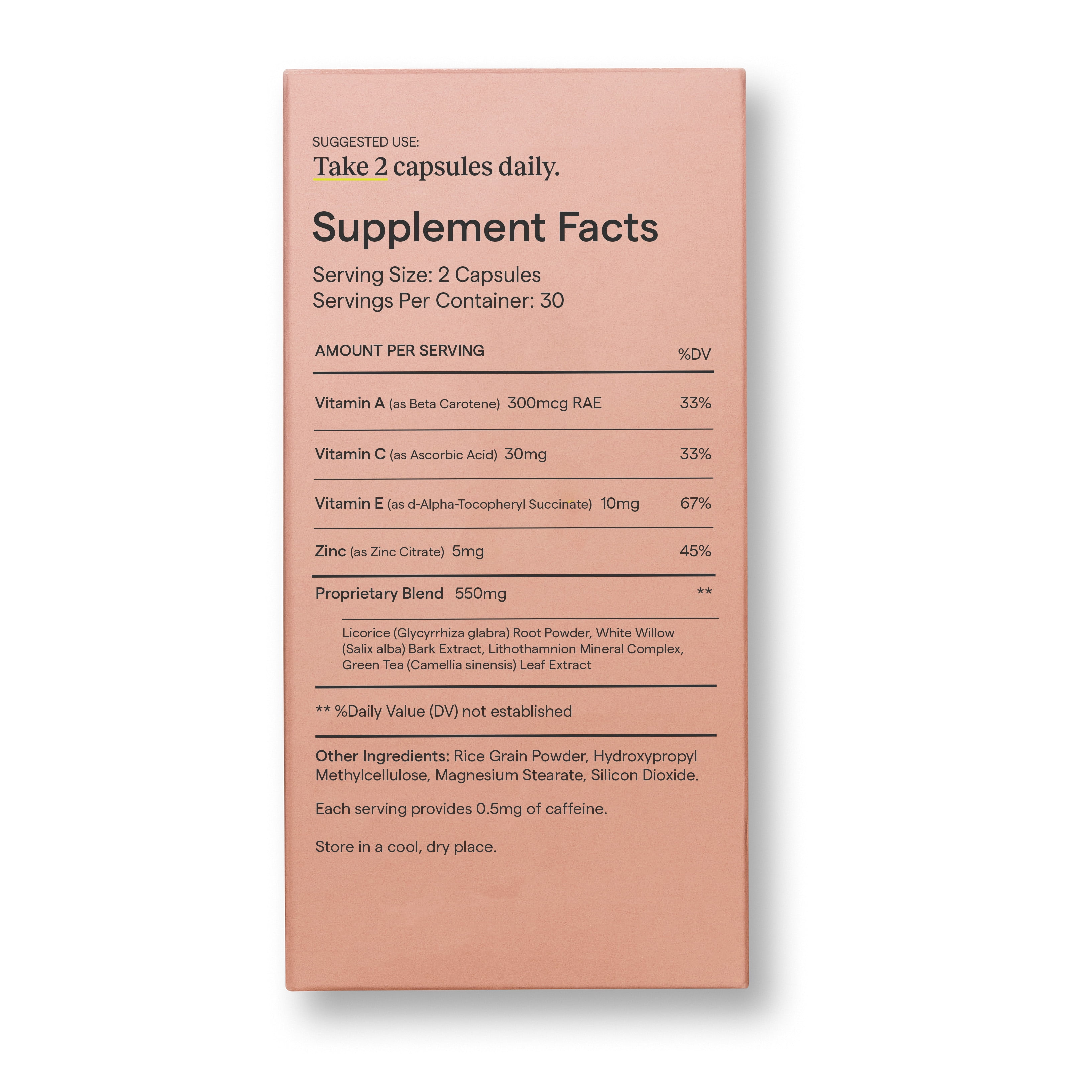 We believe your skin should be as strong as you are, which is why we created our pure and powerful Complexion Capsules with evidence-based key ingredients to help you feel more radiant. Support clear, glowing and healthy skin with a powerful blend of vitamins A, C, and E, zinc, white willow bark extract, licorice root, and green tea. Rae’s holistic universe of supplements nourishes your body, mind and shine from inside. We think of wellness as a series of paths you choose throughout the day, every day – which is why we’re dedicated to helping you create a simple wellness lifestyle routine that’s as powerful and unique as you. Rae’s vitamins are third party lab tested and formulated with ingredients that are gluten free, non-GMO and free of harmful fillers, colorants and artificial preservatives. Rae donates 5% of all proceeds to nonprofit organizations that support the advancement of women and girls.