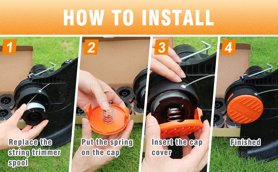 RC100P, RC-100-P Spool Cap Replacement for Black and Decker AF-100 GH900 GD600 GH610 GH900 GH912 ST6600 String Trimmer, 4 Caps & 4 Spring