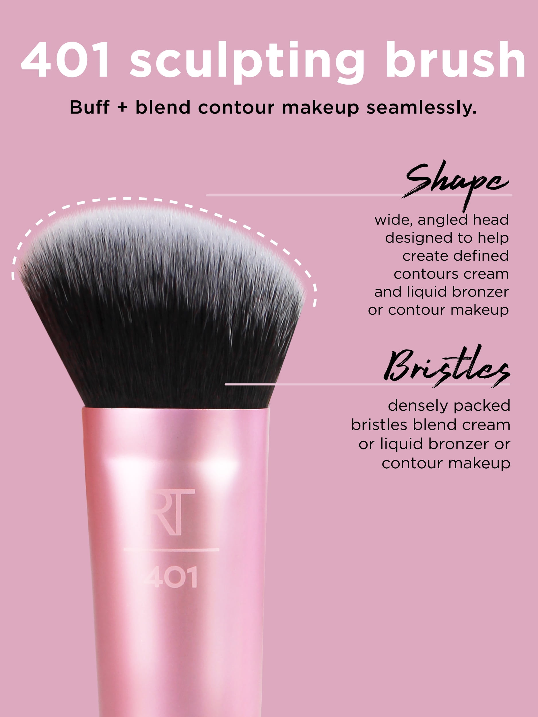 - RT 401 Sculpting: wide, angled head; place liquid or cream contour color precisely + blend seamlessly