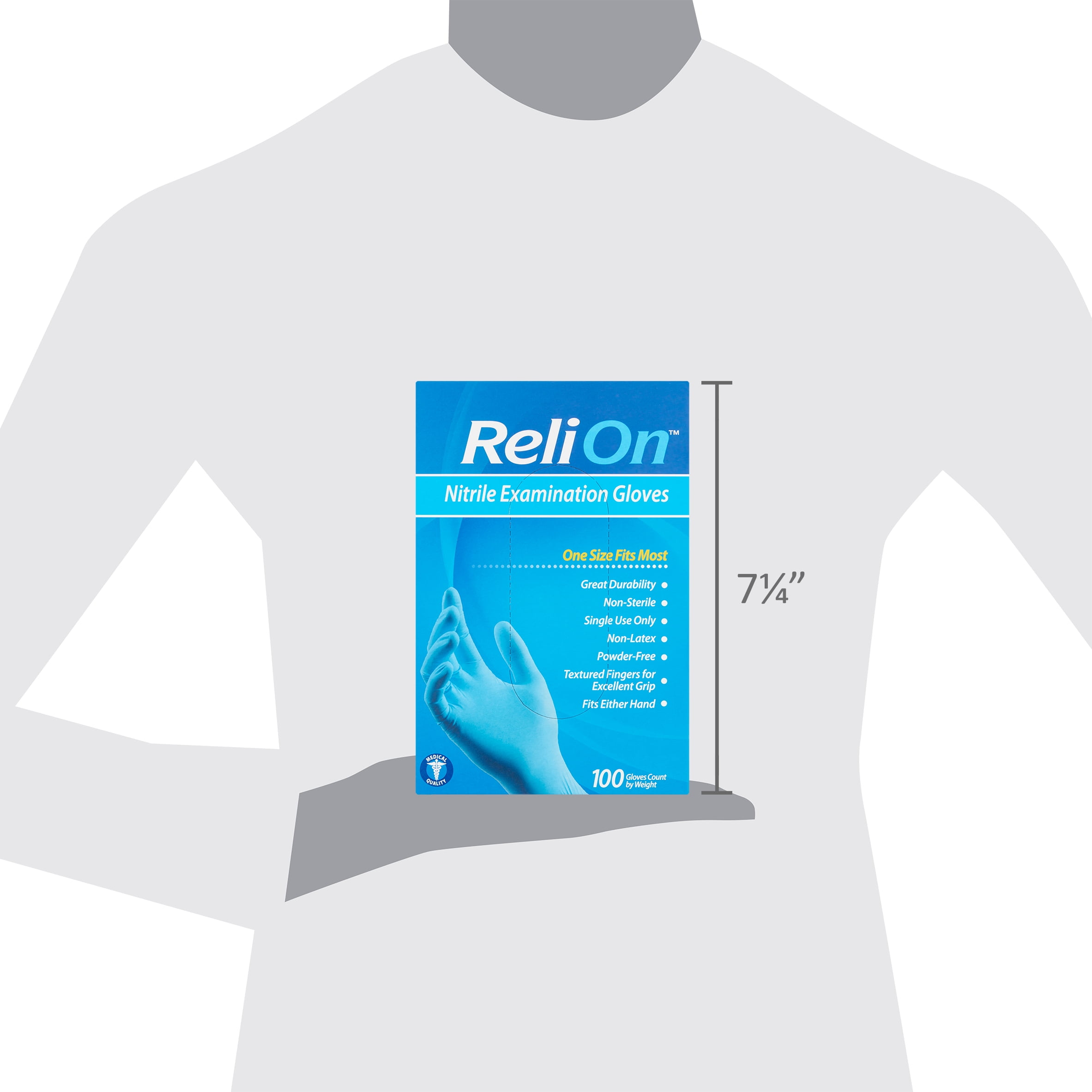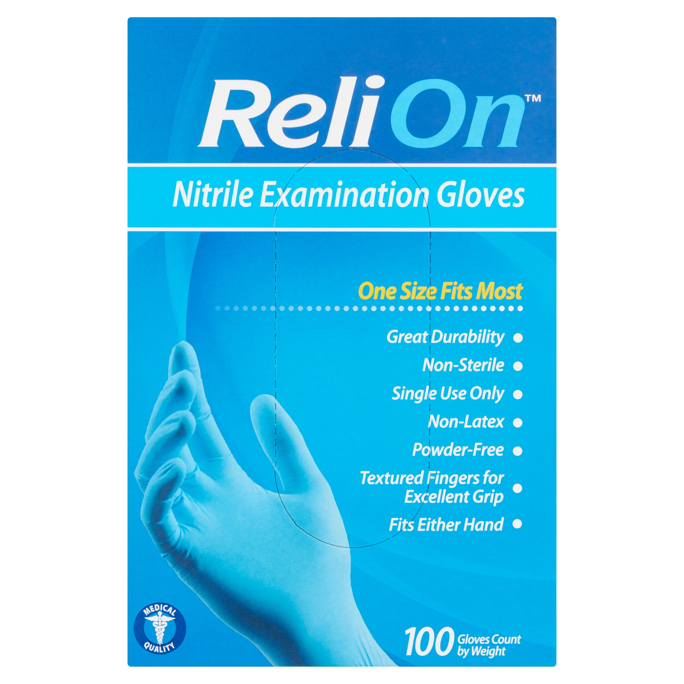 ReliOn Nitrile Examination Gloves are the perfect fit for your health care, first aid, baby care, pet care, or diabetic maintenance needs. These tailored medical quality gloves fit snuggly to offer the dexterity of a glove-free hand, and are interchangeable for lefties or righties. You will enjoy the ease and durability they provide whether you are cleaning your bathroom or trying to keep your hands clean while cooking. Consider this nitrile option, which is composed of a synthetic rubber, in lieu of latex ones — especially if you suffer from allergies or need superior puncture resistance. These gloves are developed for single and transient use only. Be sure to wear and dispose of them in accordance with industry standards and best practices. With 100 gloves in each box, you will have enough ReliOn Nitrile Examination Gloves to protect your hands time and time again!