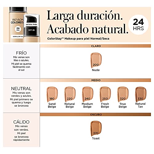 The Revlon ColorStay Makeup for Normal/Dry Skin is a comfortable, light formula made for normal or dry skin that provides a smooth, perfected look. Oil-Free and SPF20, the demi-matte finish comes in a mess-free pump and lasts for up to 24 hours. The Revlon ColorStay Makeup for Normal/Dry Skin also contains hyaluronic acid to hydrate skin over time. Available in 13 beautiful, longwearing shades. Revlon ColorStay Liquid Makeup for Combination/Oily Skin also available! Revlon is a global leader in cosmetics, hair color, fragrances, skincare, and beauty care products. One of the strongest consumer brand franchises in the world, Revlon’s products are sold in over 100 countries across six continents. Revlon revitalized the industry over the years with iconic nail and lip colors and with breakthrough technology like ColorStay transfer-resistant lipstick and makeup.