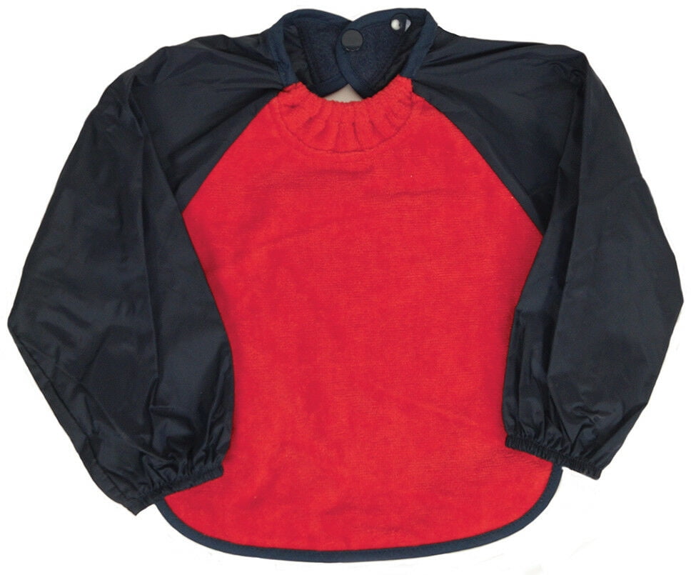 Silly Billyz Waterproof Cotton Velour & Nylon Long Sleeve Toweling Bib (Red, Large)