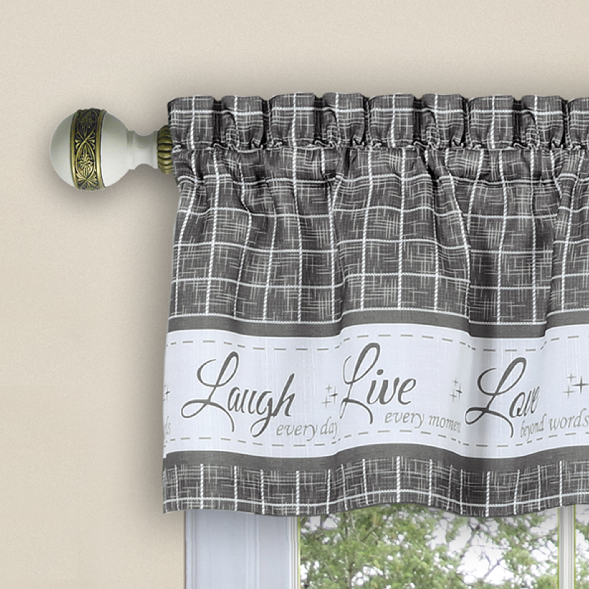 Simple Elegance by Ben&Jonah Laurel Window Curtain Tier Pair and Valance Set – 58’W x 36’L – Taupe