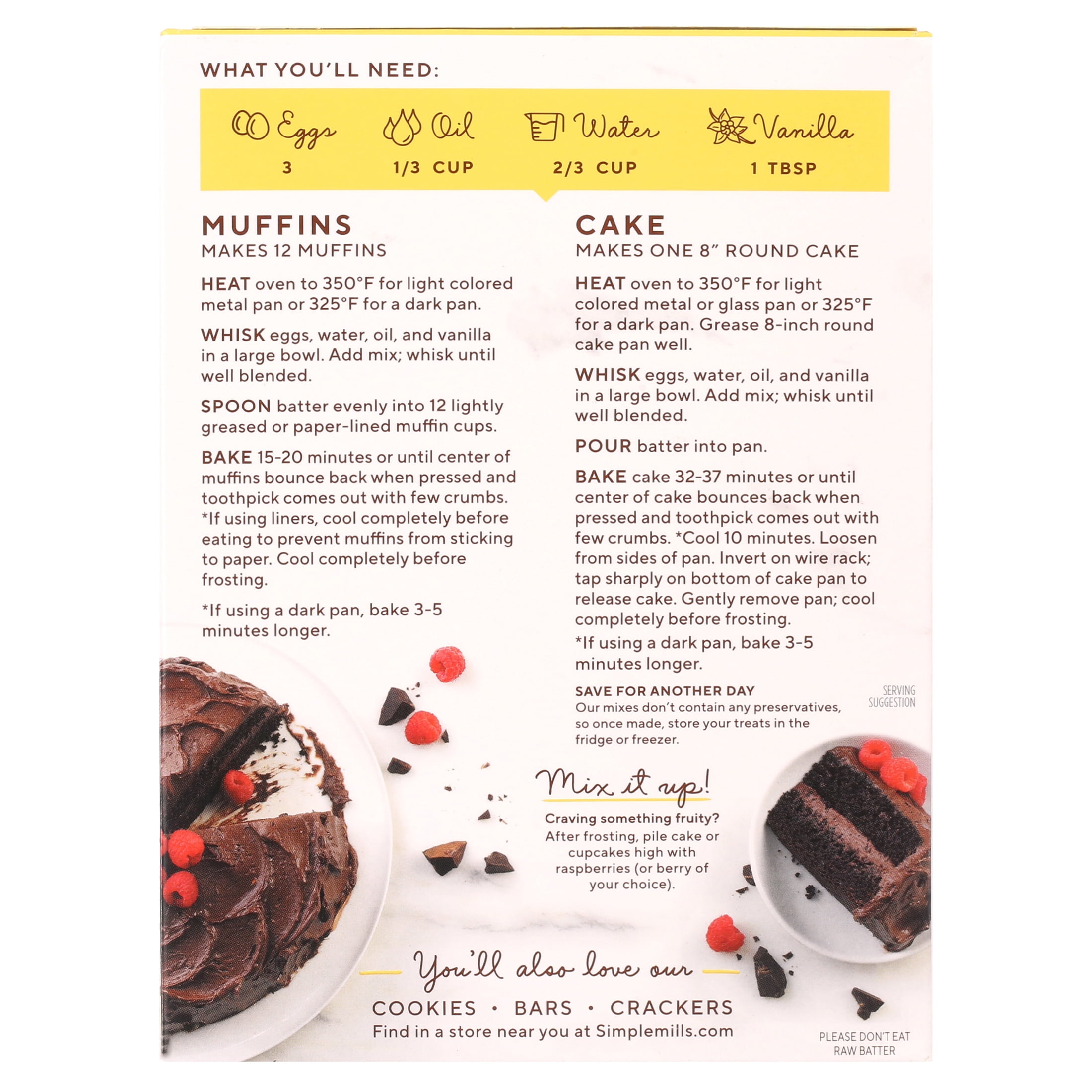 SIMPLE MILLS CHOCOLATE MUFFIN AND CAKE BAKING MIX IS MADE WITH ALMOND FLOUR, COCONUT FLOUR AND COCONUT SUGAR FOR NUTRIENT VALUE. THIS PALEO-FRIENDLY MIX CONTAINS NO GLUTEN, DAIRY OR SOY. SIMPLY COMBINE THIS BOX MIX WITH EGGS, OIL OR BUTTER, WATER AND VANILLA FOR A DELICIOUS MUFFINS OR CAKE BATTER. SEE THE NUTRITION FACTS PANEL FOR ALLERGEN INFORMATION. INCLUDES ONE 10.4 OZ. BOX OF SIMPLE MILLS CHOCOLATE MUFFIN AND CAKE BAKING MIX. SIMPLE MILLS ENRICHES LIVES AND BODIES THROUGH SIMPLE, DELICIOUS, REAL FOOD. WE STRIVE TO MAKE HEALTHFUL CHOICES EASY BY OFFERING FOOD THAT TASTE GREAT IN THE MOMENT AND NOURISHES YOUR BODY FOR THE LONG-TERM. WE BELIEVE IN CLEAN, NUTRITIOUS FOOD FOR A BETTER LIFE, IT’S THAT SIMPLE.Simple Mills Chocolate Muffin And Cake Baking Mix, 10.4 Oz