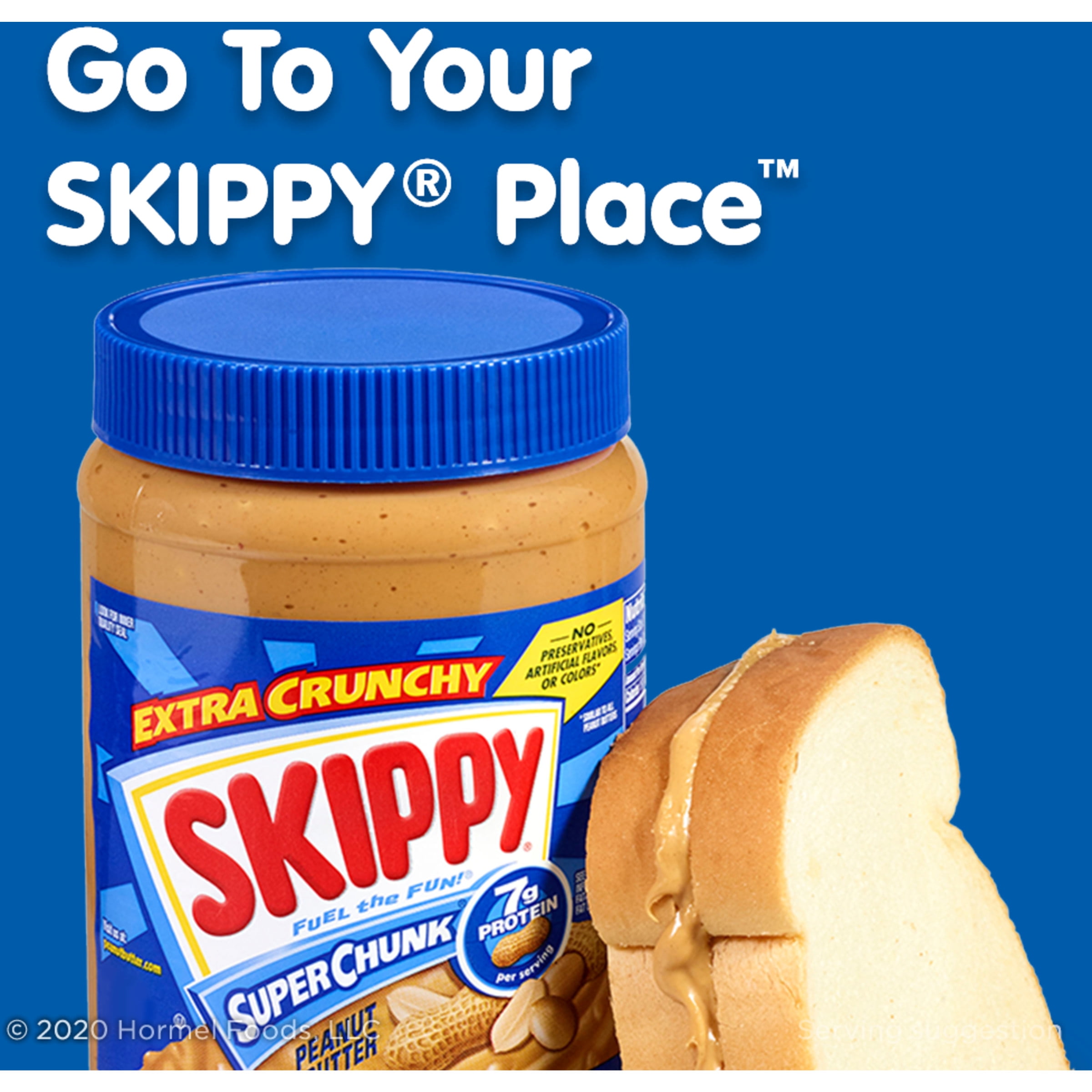 SKIPPY® Peanut Butter has been spreading tasty fun to every household since 1933. With 4 simple ingredients, 7 grams of protein, and no artificial flavors or colors, this super chunky peanut butter 2 pack is perfect for any snack or part of any meal. From a delicious piece of peanut butter toast, to apples or celery with a peanut buttery dip, the different ways to enjoy SKIPPY® are endless. So even if your go-to peanut butter is chunky, smooth is your way of life. Be Smooth Like SKIPPY™.