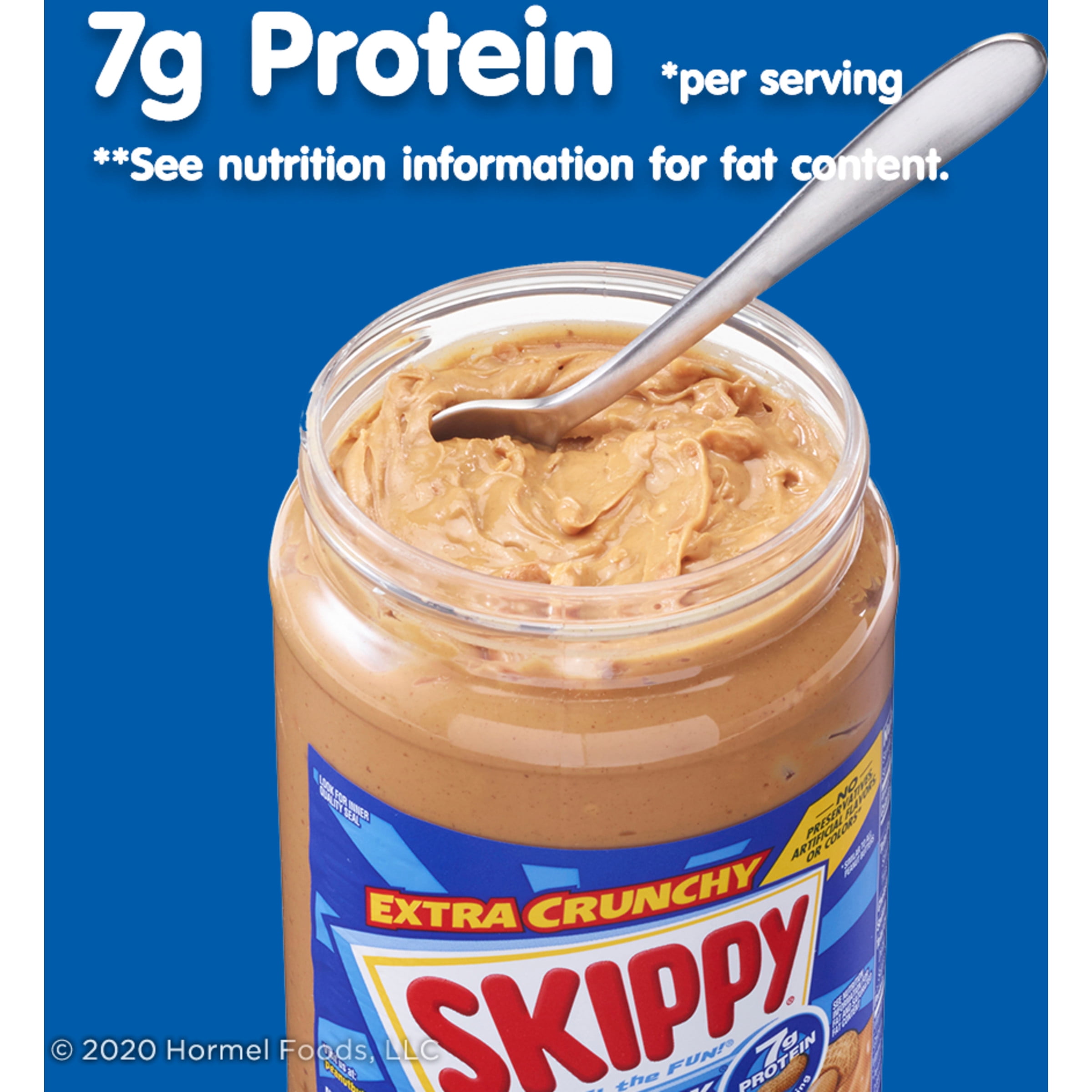 - Two 40 oz. jars of SKIPPY SUPER CHUNK Peanut Butter. Four simple ingredients with a sweet and savory peanut flavor, seven grams of protein and zero grams trans-fat per serving