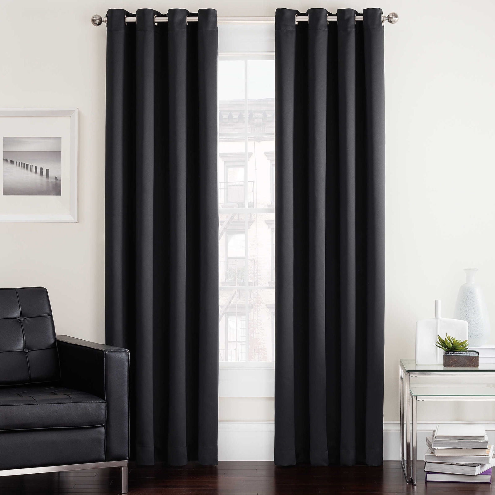 Solid Amy Thermal Blackout Window Curtain With Shiny Back To Reflect Sunlight! (95’Long, Midnight Black)