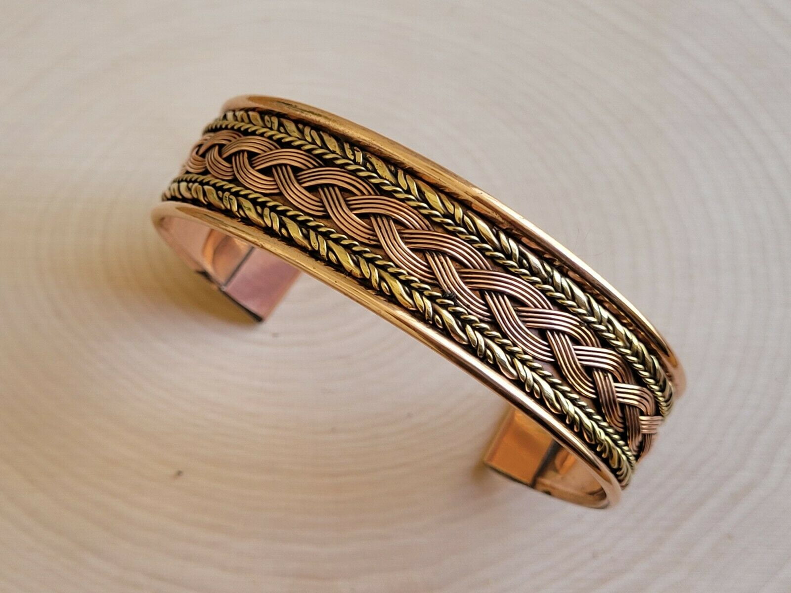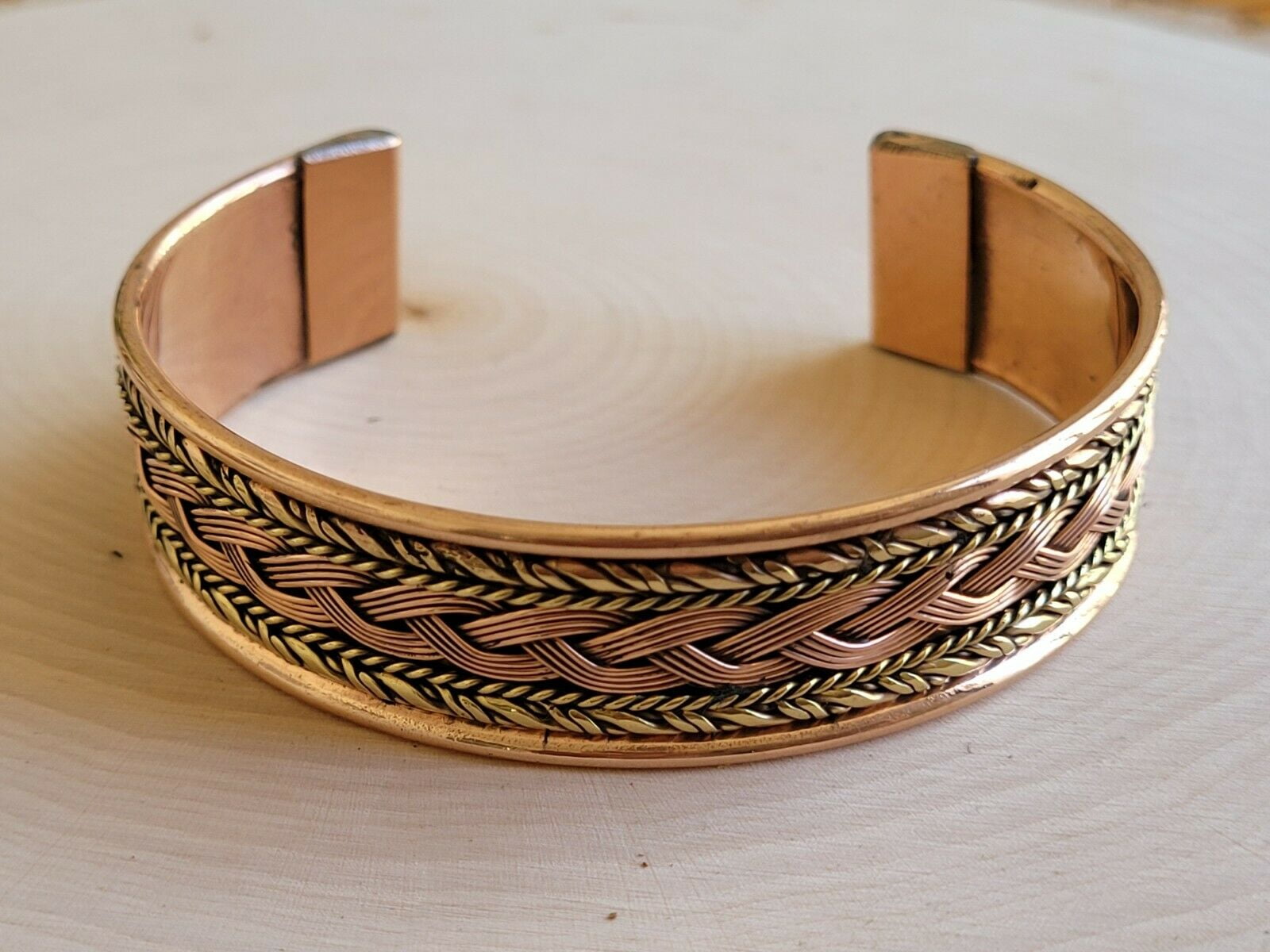 Solid Copper Two Tone Cuffed Bracelet Pure Copper Arthritis Pain Therapy Cuff