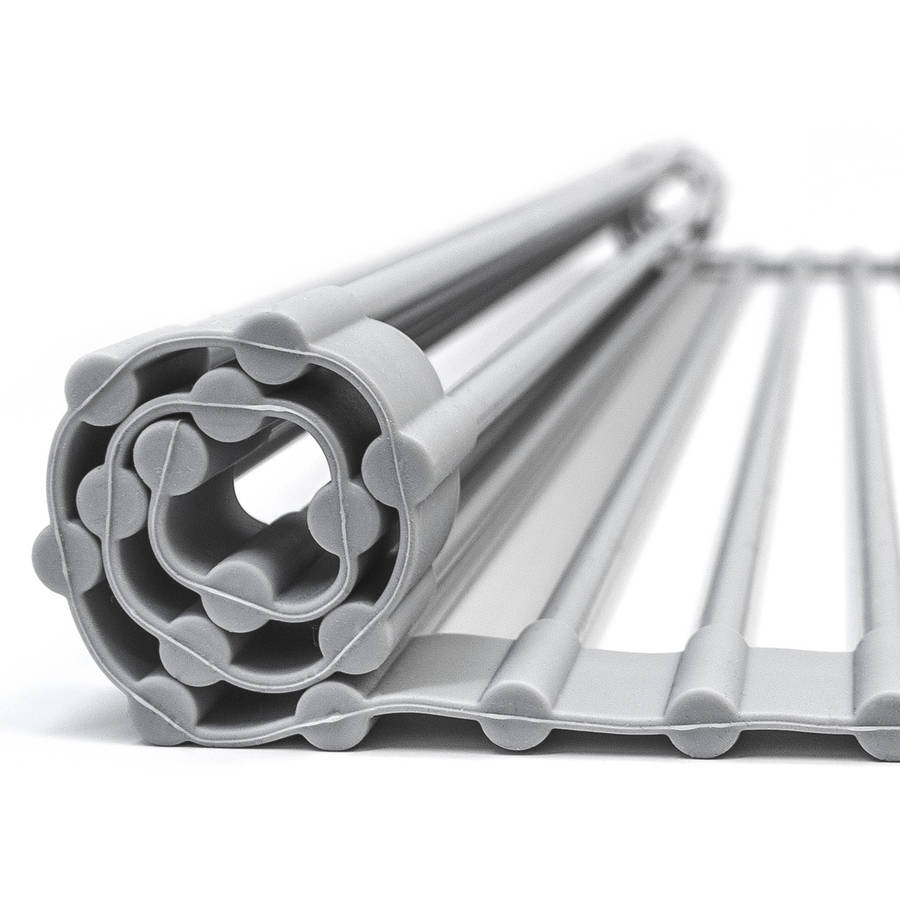 Features: -Complement a new home, first apartment, or kitchen renovation with this must-have drying rack. -Save valuable countertop space and avoid water stains on surface areas. -Great kitchen sink organizer. -Unroll above the sink for air-drying roll up, fold away, or tuck behind kitchen faucet when not in use. -Allows air flow to promote drying use as a trivet/drying rack for pots, pans, ceramic, porcelain, cloths, sponges, flatware, infant bottles, and much more. -Great cutlery and plate organizer to separate clean from dirty dishes. Type: -Freestanding Drying Racks. Location: -Indoor. Dimensions: Overall Height – Top to Bottom: -0.5". Overall Width – Side to Side: -13". Overall Depth – Front to Back: -12.5". Drying Space: -21". Overall Product Weight: -2 lbs.SRBU1107