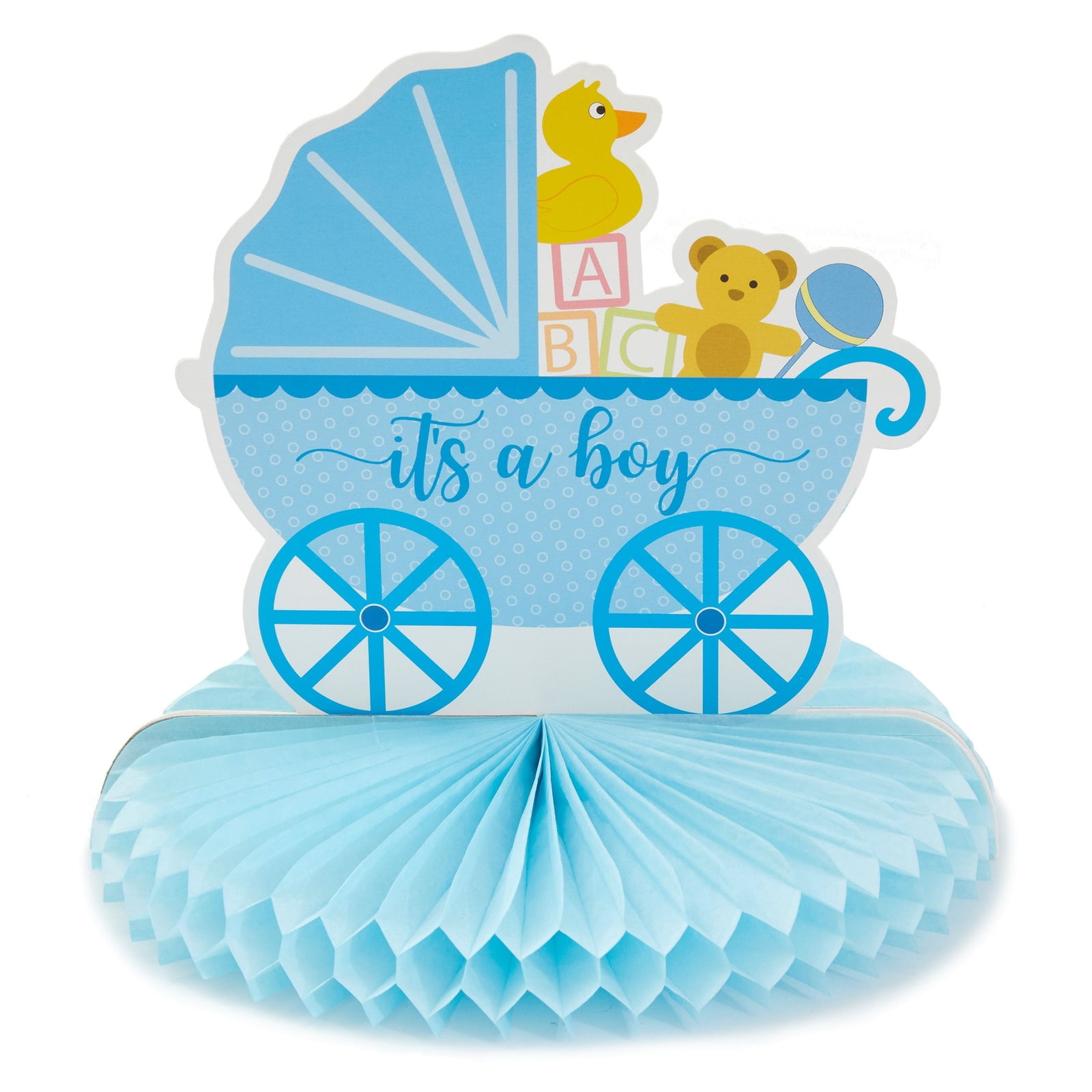 6 Pack honeycomb baby shower table decorations for boys in 3 designs; 2 of each design. 3 Designs: Yellow duck with gift, vintage style baby stroller, and "Welcome Baby Boy" sign. Decorate tables and complete your Baby Shower decor with these beautifully designed party decorations. Material: Cardstock and honeycomb paper Product names are trademarks of listed manufacturers or other owners and are not trademarks of eForCity Corp. The manufacturer does not necessarily endorse the use of these products.6 Pack honeycomb baby shower table decorations for boys in 3 designs; 2 of each design. 3 Designs: Yellow duck with gift, vintage style baby stroller, and "Welcome Baby Boy" sign. Decorate tables and complete your Baby Shower decor with these beautifully designed party decorations. Material: Cardstock and honeycomb paper