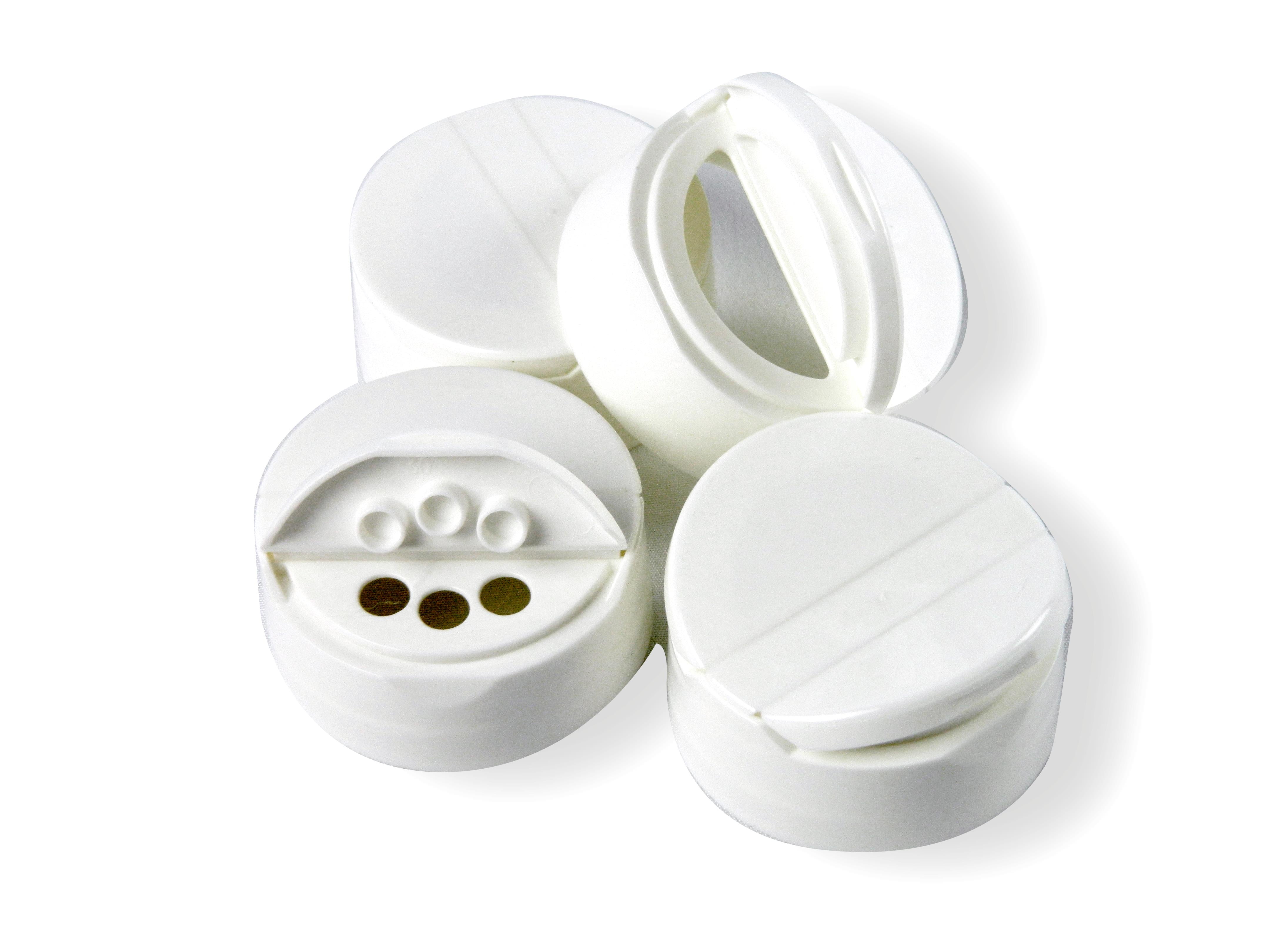 - 10 Empty clear PET bottles come with a quality white flip top spoon/sift cap