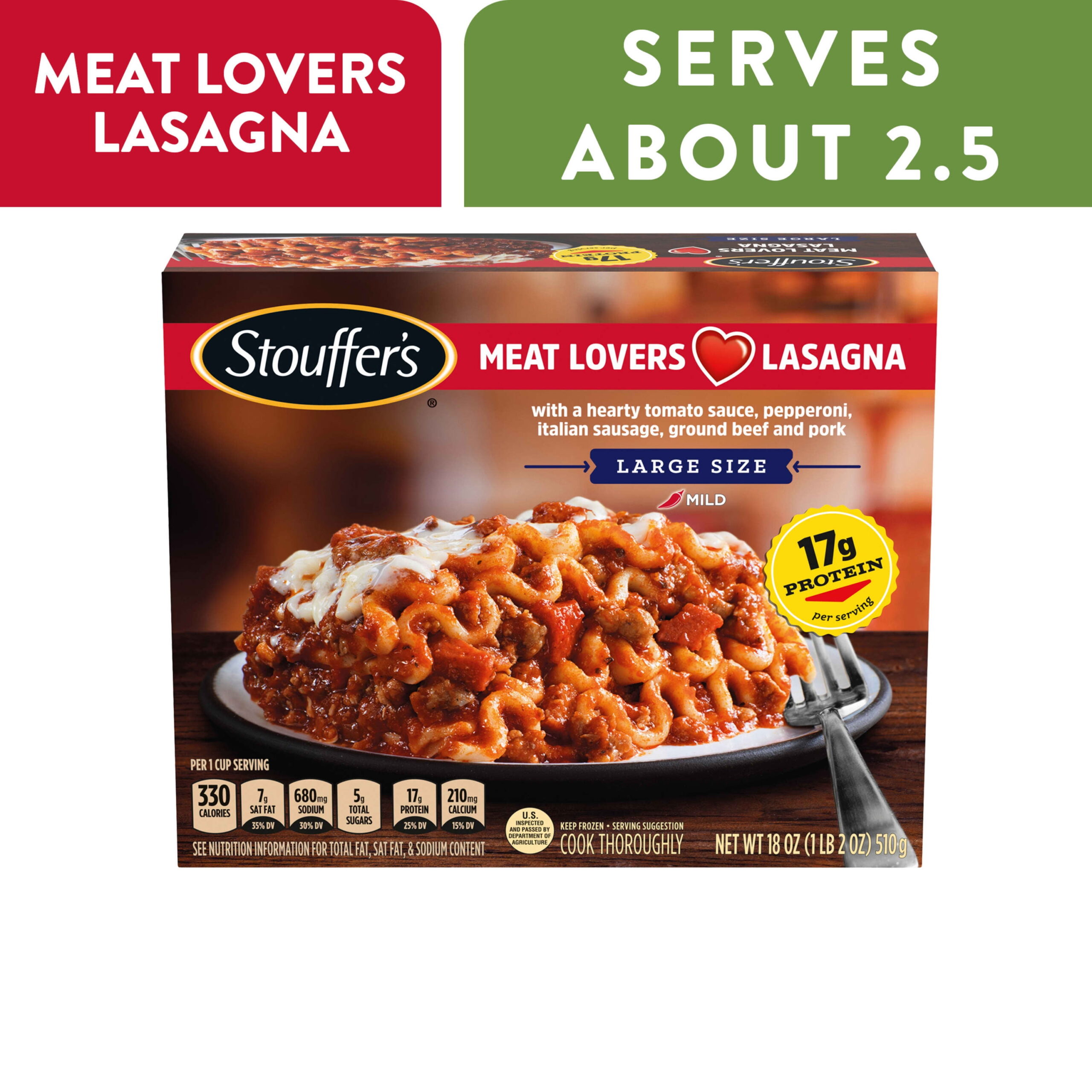 Stouffer’s Large Size Meat Lovers Lasagna Frozen Meal 18 oz