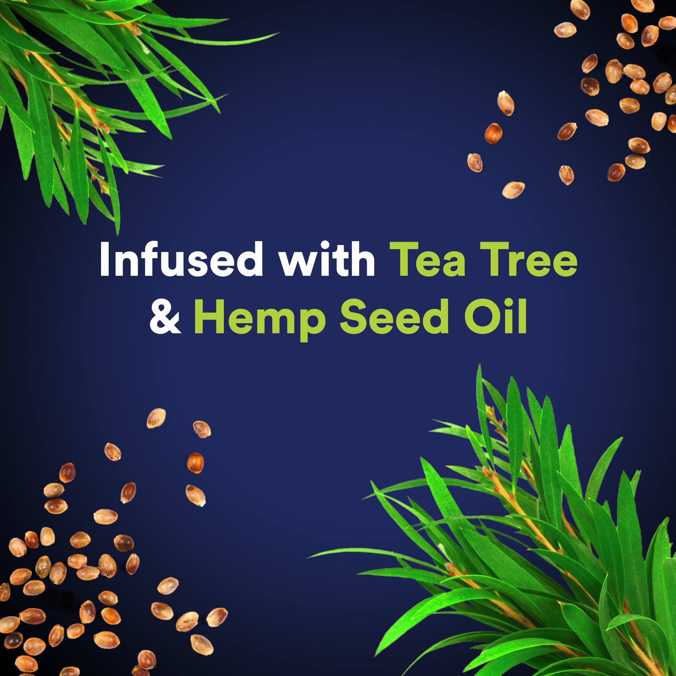- Suave Men Tea Tree + Hemp Seed 2 in 1 Revitalizing Shampoo & Conditioner is infused with real tea tree oil and hemp seed oil.