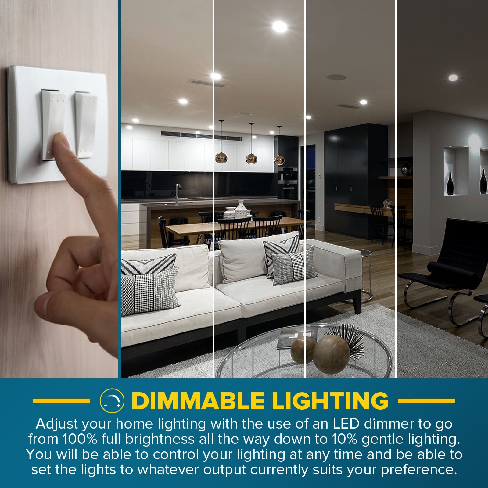 - DIMMABLE – Adjust your interior lighting with the use of an LED dimmer to go from 100% full brightness all the way down to 10% gentle lighting. You will be able to control your LED flood light bulbs at any time and be able to set the lights to whichever output currently suits your preference.