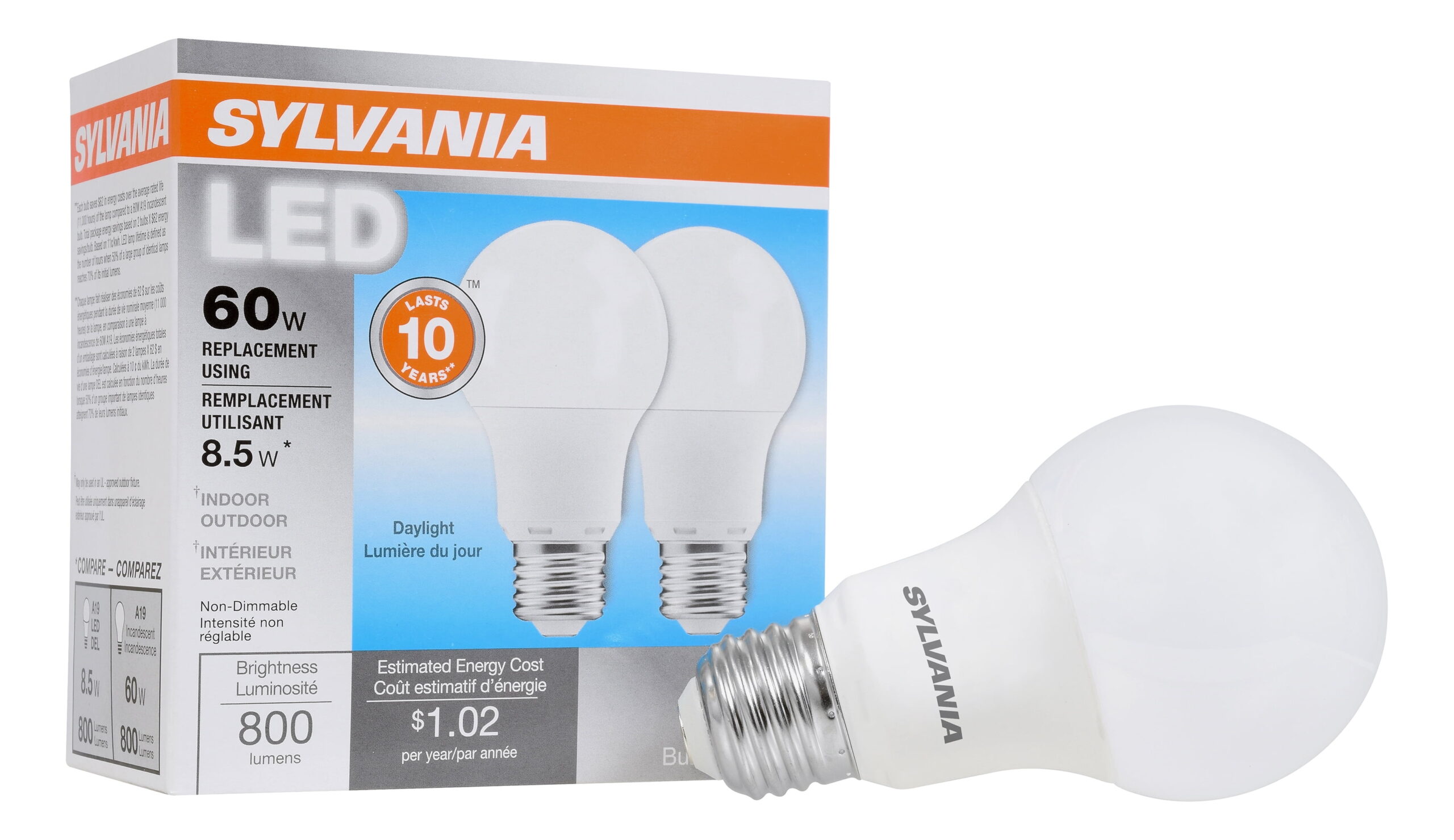 Sylvania LED Light Bulb, 60W Equivalent, A19, Daylight, 2 Pack