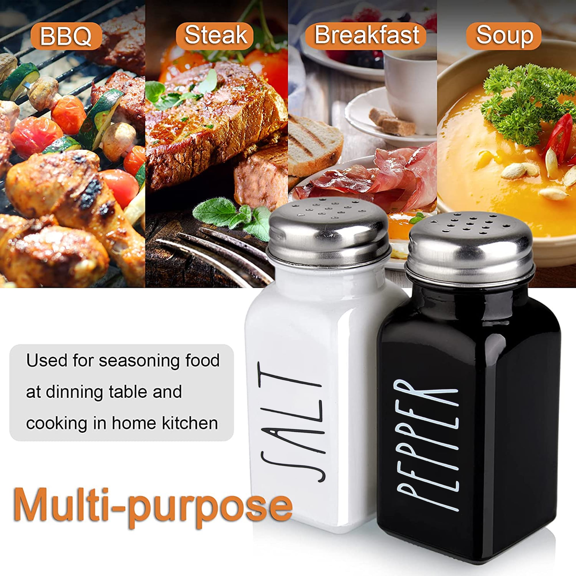 No Mix-Ups with The Salt and Pepper Shakers Set – Set of 2 salt shakers set printed with "Salt" and "Pepper" can be used to hold sea salt and black pepper separately, and you’ll always know which one’s pepper and which one’s salt with these glass salt and pepper.
