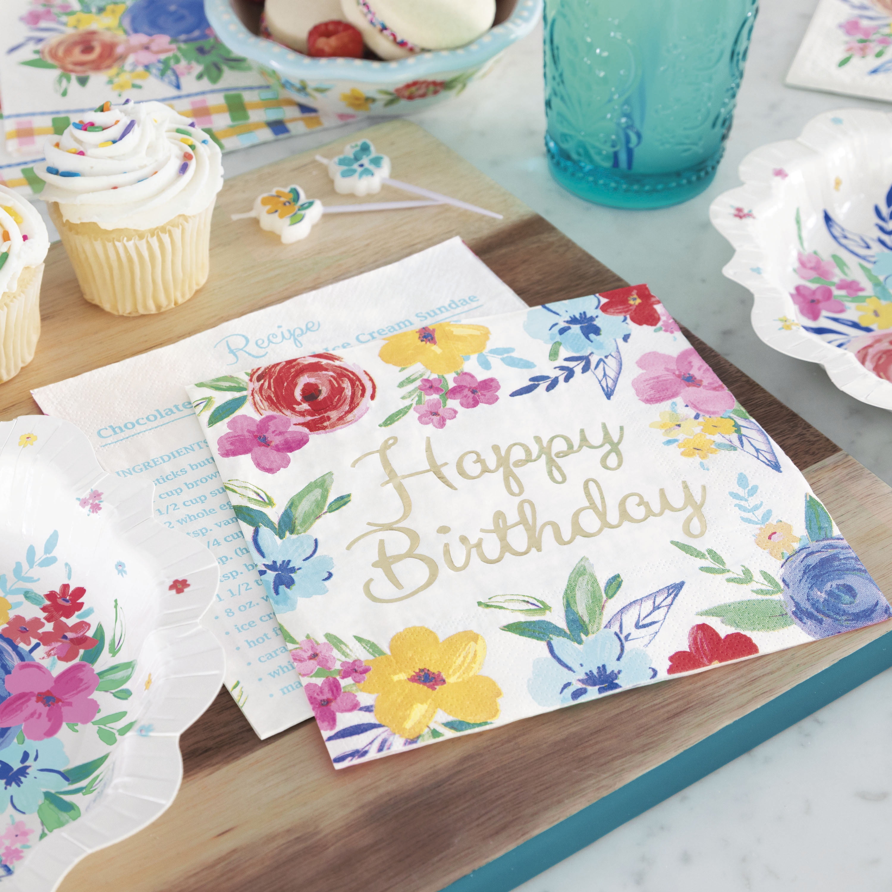Add some eye-catching florals to your table with our Pioneer Woman Floral Blue Paper Dessert Plates. These 8-inch paper plates feature gorgeous flowers and an ornate border – perfect for your summer picnic, garden party, or spring party. Whether you use these plates to serve cake, cookies, or slices of pie, they’ll make a lovely choice. Plus, they’re disposable, so after-party cleanup will be a breeze. Shop the rest of our affordable floral party supplies, and bring more blooms to your celebration.