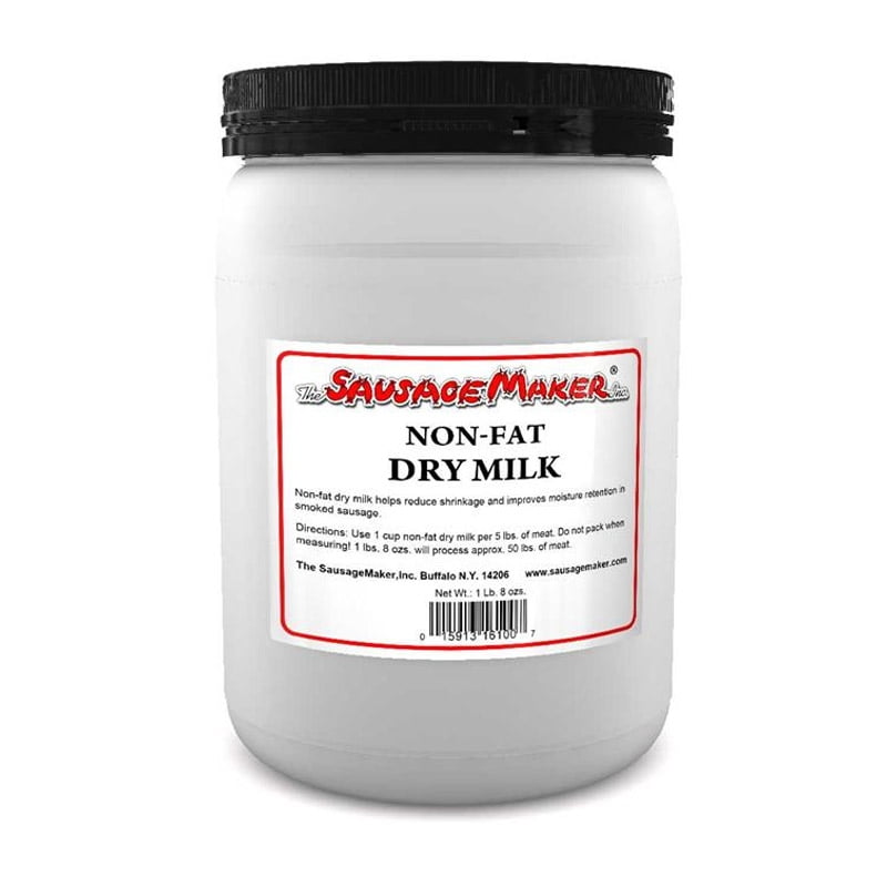 A special milk that has the consistency of corn starch, a very fine powder. For use with fine quality sausage and lunch meats. Non-fat dry milk was used by old time sausage makers before Soy Protein Concentrates were available. Helps cut shrinkage and improves moisture retention. 1 lb 8 oz will process 25 lbs. of sausage. * Since Non-Fat Dry Milk is a food product, it is non-refundable * This is GRADE ‘A’ High Heat Nonfat Dry Milk, made from the removal of milkfat and water from Cows’ milk and contains Lactose, Milk Protein and Minerals in the same relative proportion as in the fresh milk from which it is made. Storage should be in cool and dry environment with temperatures below 80-degrees Fahrenheit and below 65% relative humidity. Made in USA. GMO-FREE. CONTAINS MILK. DOES NOT CONTAIN: Cereals containing gluten, crustaceans, eggs, fish, peanuts, soybeans or nuts.