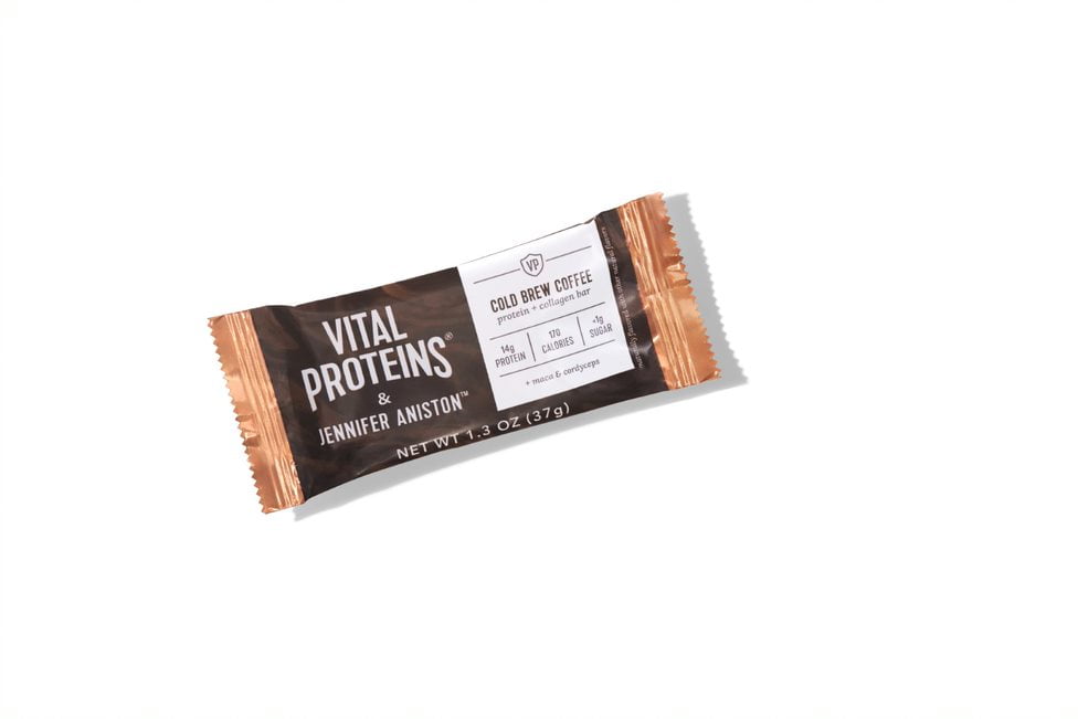 Vital Proteins® & Jennifer Aniston™ are elevating your bar game. This delicious Protein and Collagen 4 Count Bar was developed in collaboration with Vital Proteins’ Chief Creative Officer Jennifer Aniston. This satisfying bar can easily be stashed in your pack for a “whenever” snack at under 200 calories! The Vital Proteins® & Jennifer Aniston™ Cold Brew Coffee Flavored Protein and Collagen Bar conveniently offers a unique protein blend including 6g of collagen peptides and 8g of whey and milk protein. Plus it’s made with exciting and innovative ingredients inspired by ingredients Jennifer Aniston would add to her shakes like maca & cordyceps.