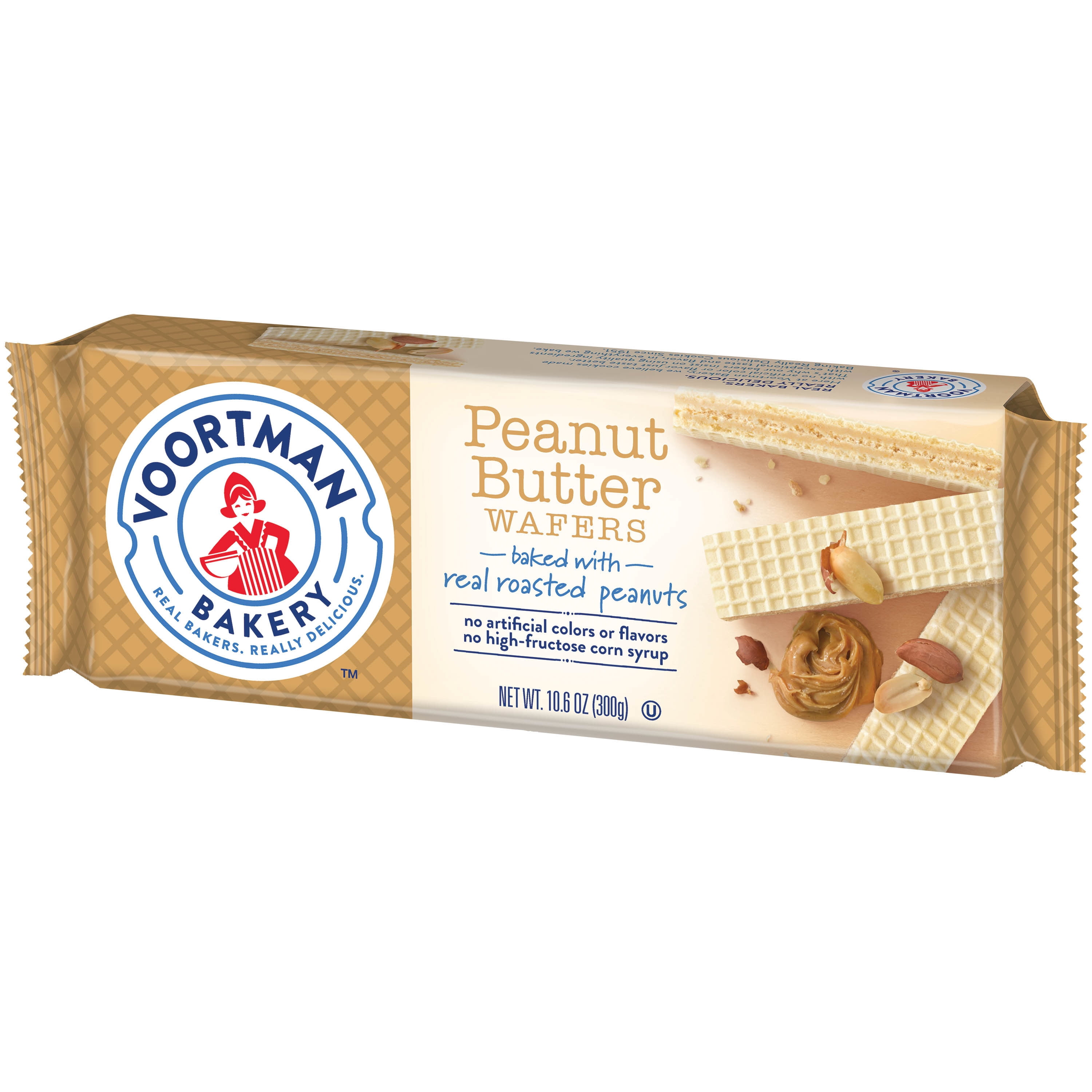 VOORTMAN Peanut Butter Wafers are a deliciously crunchy peanut butter snack. Crispy wafers meet creamy peanut butter for the perfect peanut treat. Plus, these peanut butter wafers contain no artificial colors, flavors, or high-fructose corn syrup. Pair them with your favorite hot or cold beverage for an afternoon pick-me-up and savor the rich peanut butter taste. Stack these wafers on a tray and share them any time of day. When only a tasty peanut butter snack will do, reach for VOORTMAN Peanut Butter Wafers.