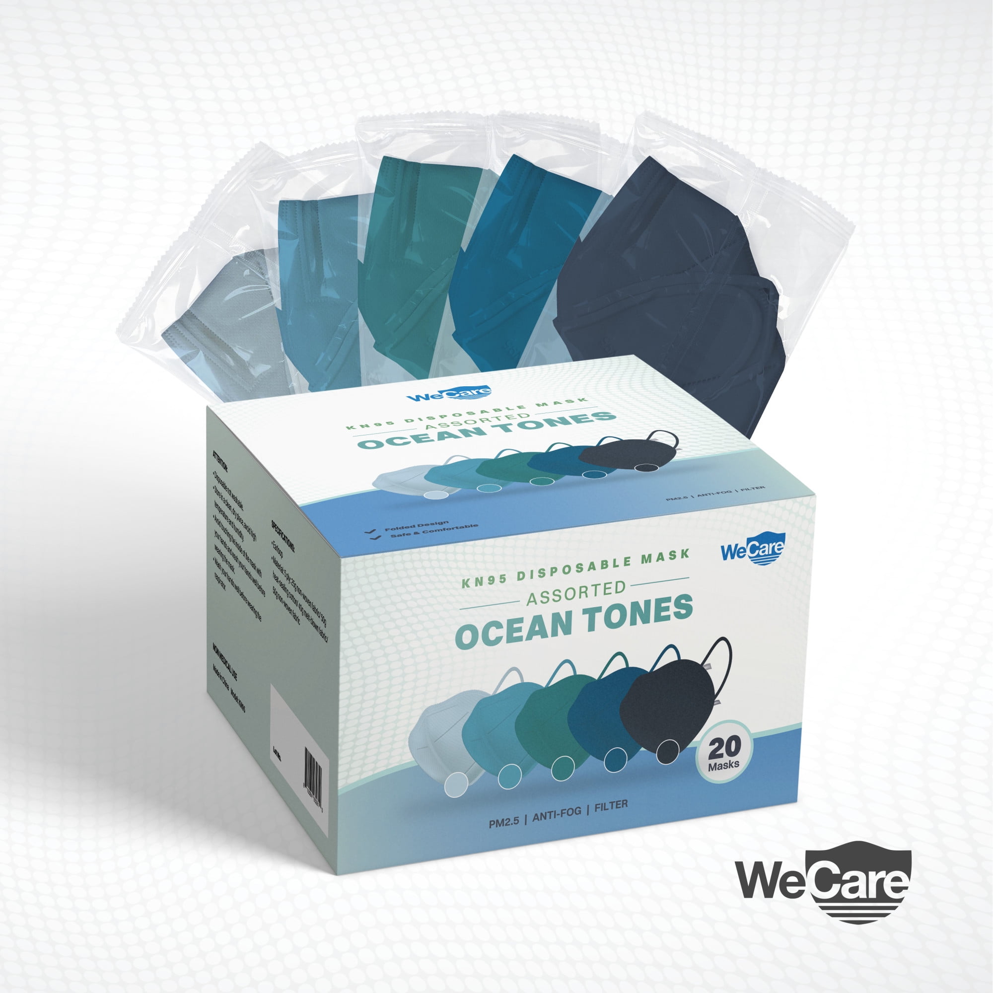 WeCare Protective Disposable Face Mask, 5-Ply Layer (20 Individually Wrapped) – Ocean Tones