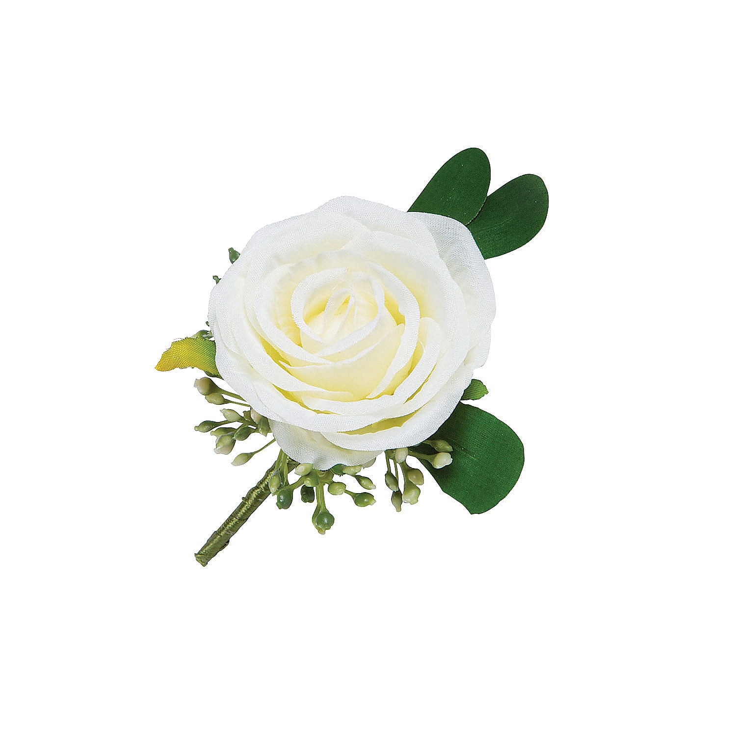 These White Rose Boutonnieres are the picture of simple elegance and they’re an essential addition to your wedding supplies. Pin them onto the groomsmen and other members of the wedding party or work them into bridesmaids’ hair or other accessories. Polyester. (6 pcs per unit) 3"