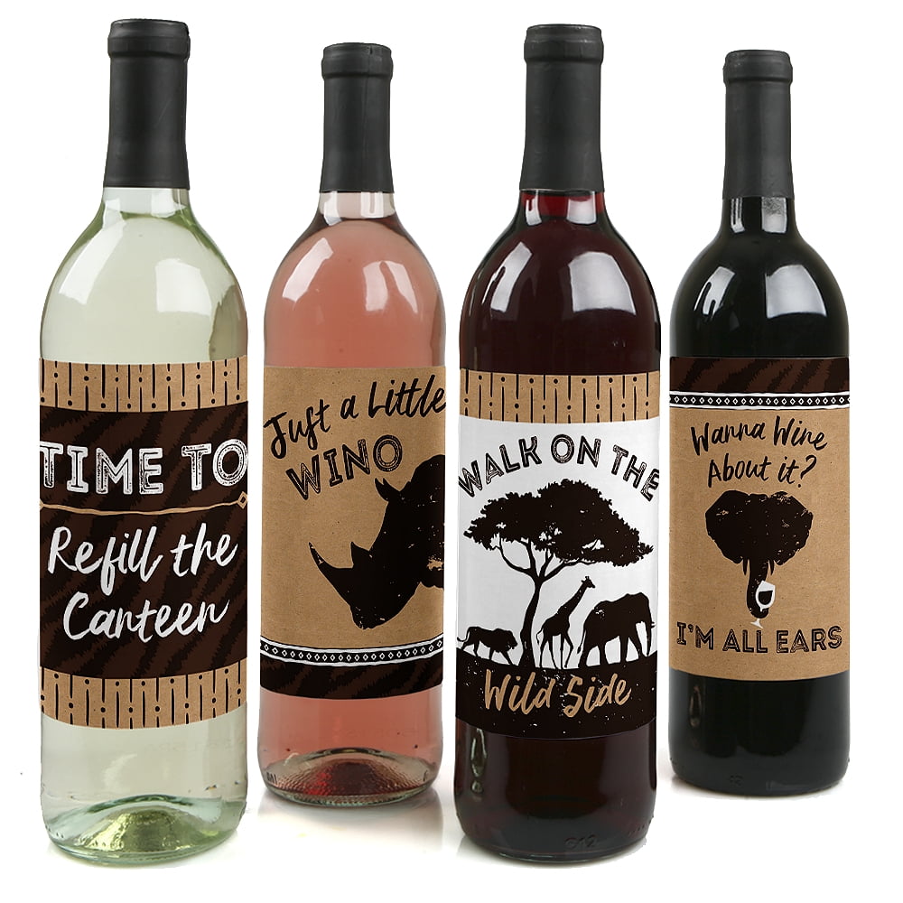 Wild Safari – African Jungle Adventure Birthday Party or Baby Shower Party Decorations for Women and Men – Wine Bottle