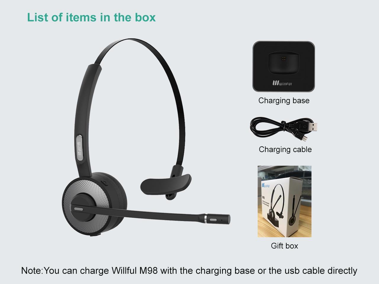 - Pro Noise Cancelling Bluetooth Headset: The microphone boom enables the newest noise-canceling tech, so it can pick up your voice exactly and block the noise from your surroundings. Willful M98 headset can make you have a clear talk with the people at the other end