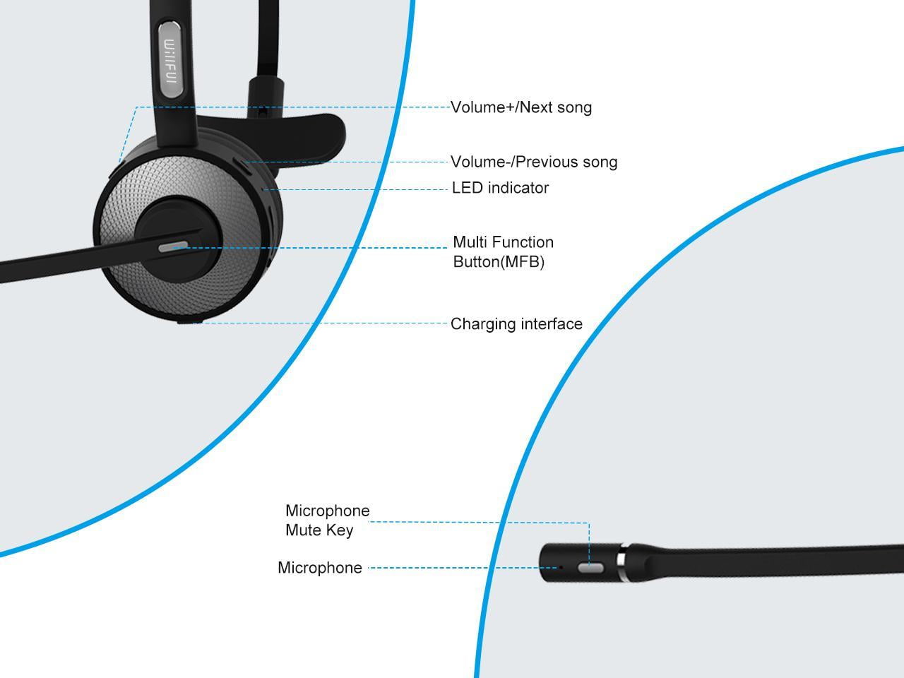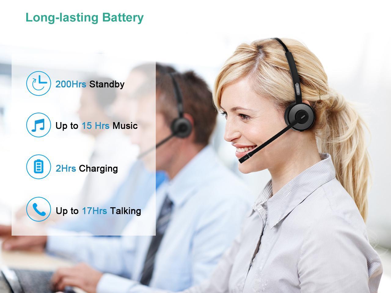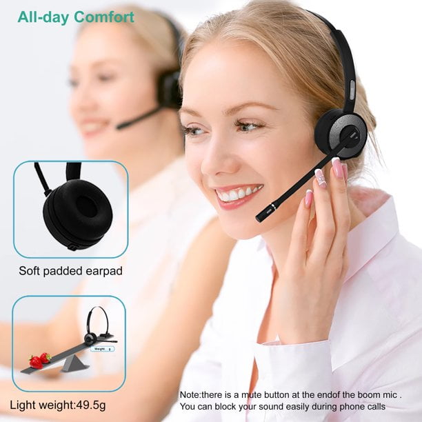 - Wireless Headset with Mute Button: Mute function brings more convenience. You only need to press the mute button to eliminate your sound. It is a perfect choice for face-to-face talking and meeting interruptions