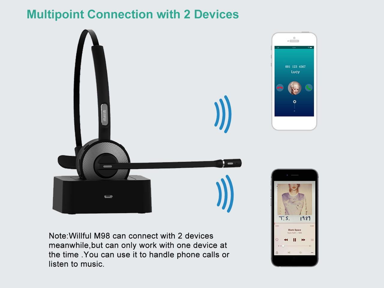 Wide Compatibility This headset supports connecting to most Bluetooth-enabled devices like cellphones, PC, tablets, laptops, and so on. It is convenient that pair with two devices at the same time for accessibility and flexibility. Long-lasting Battery Willful M98 can offer up to 17 hours continuous talking time and 200 hours standby time from 2 hours charging. This headset is more suitable for truck drivers, business people in the office.