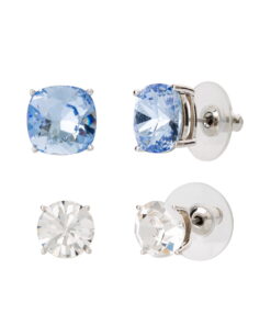 FINE SILVER PLATED RD CLEAR / CUSHION LIGHT BLUE CRYSTAL EARRING SET