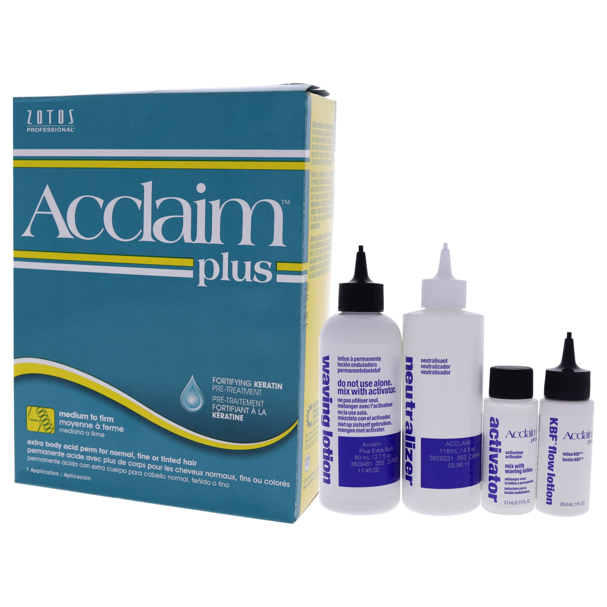 What it is: Acclaim is an acid perm that provides well-defined workable curls with maximum versatility potential. Acclaim allows you to create the texture, volume and styles clients desire. What it does: The Acclaim formula, combined with natural processing, provides optimum true-to-rod size curls with consistent, predictable results. It contains exclusive Zotosol conditioners that replenish and strengthen the hair for healthy looking shine, smooth feel and greater styling control. What else you need to know: Available in 4 different formulas: Regular, Plus Regular, Extra Body, Plus Extra Body. Product Options Available are as follows: Option: Extra Body / Medium to Firm – Zotos Acclaim Acid Perms; Option: Plus Extra Body / Medium to Firm – Zotos Acclaim Acid Perms; Option: Plus Regular / Soft – Zotos Acclaim Acid Perms; Option: Regular / Soft – Zotos Acclaim Acid Perms;What it is: Acclaim is an acid perm that provides well-defined workable curls with maximum versatility potential. Acclaim allows you to create the texture, volume and styles clients desire. What it does: The Acclaim formula, combined with natural processing, provides optimum true-to-rod size curls with consistent, predictable results. It contains exclusive Zotosol conditioners that replenish and strengthen the hair for healthy looking shine, smooth feel and greater styling control. What else you need to know: Available in 4 different formulas: Regular, Plus Regular, Extra Body, Plus Extra Body. Product Options Available are as follows: Option: Extra Body / Medium to Firm – Zotos Acclaim Acid Perms Option: Plus Extra Body / Medium to Firm – Zotos Acclaim Acid Perms Option: Plus Regular / Soft – Zotos Acclaim Acid Perms Option: Regular / Soft – Zotos Acclaim Acid Perms