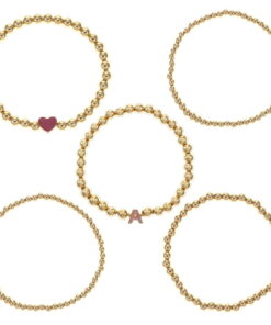 Time and Tru 5-Piece Stretch Bracelet Set, Initial Letter ‘A’ Charm with Gold-tone Beads