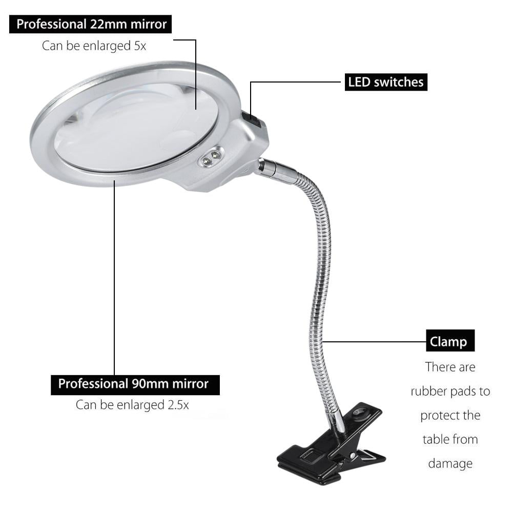 HERCHR Desk Magnifier, Large Lens Table Top Desk Lamp Lighted Magnifier Magnifying Glass With LED Light Clamp,Table Top Magnifier
