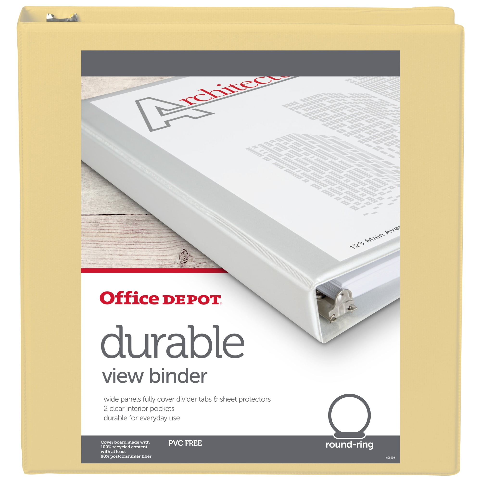 Office Depot® Brand 49% Recycled Durable View Round-Ring Binders, 1-1/2′ Round Rings, Yellow