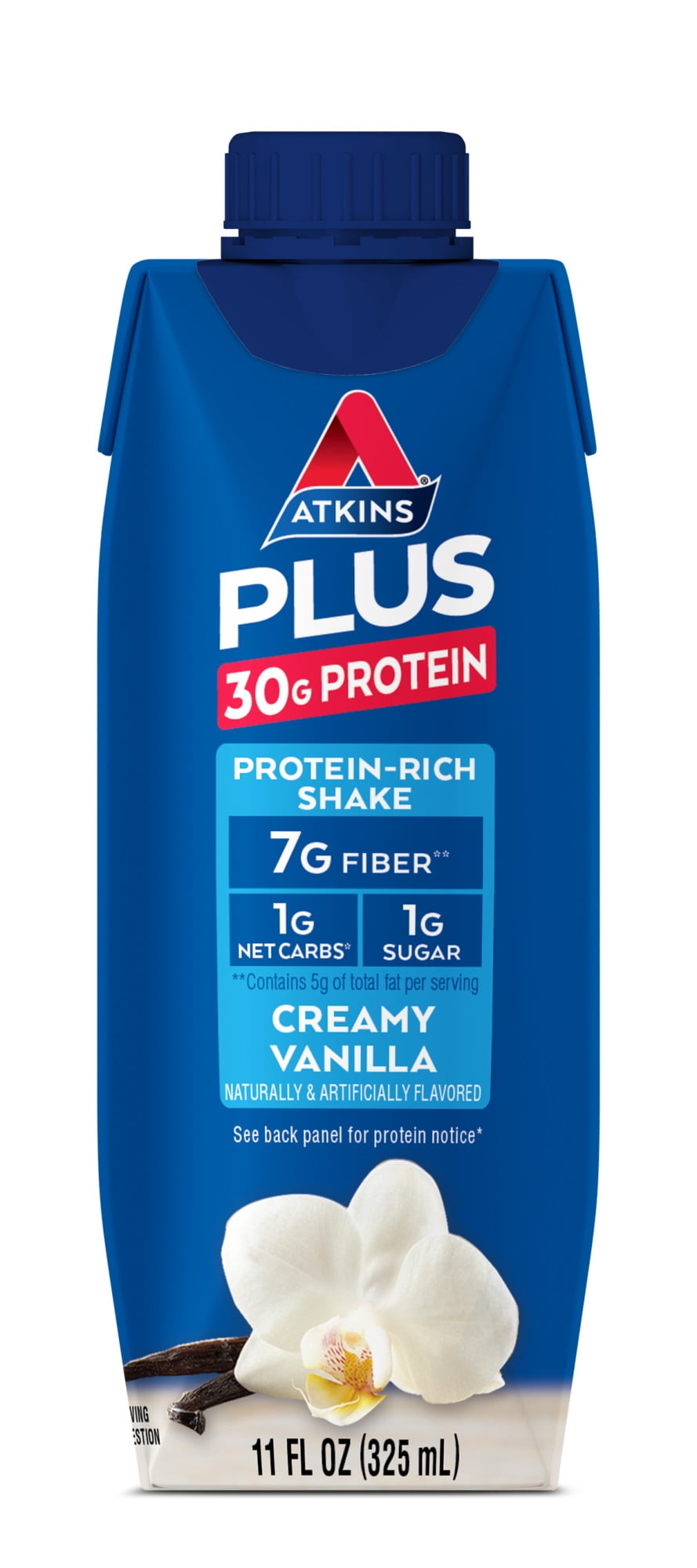 Atkins PLUS Protein & Fiber Shake, Creamy Vanilla, Keto Friendly, 11 oz., 4 Count