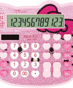 Women Calculators,Creative Cute Solar Energy Calculator, 12 Digit Large LCD Display, Handheld for Daily and Basic Office, Pink (Pink+Pink)
