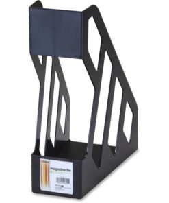 Deli Magazine File Book Holder Desktop Organizer, 4 Compartments, Plastics, Black