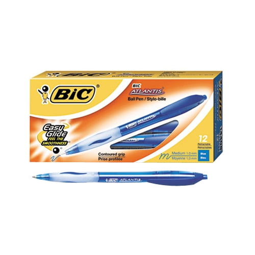 BIC Atlantis Retractable Pens Medium Pen Point – 1 mm Pen Point Size – Blue – Clear Barrel – 12 / Dozen