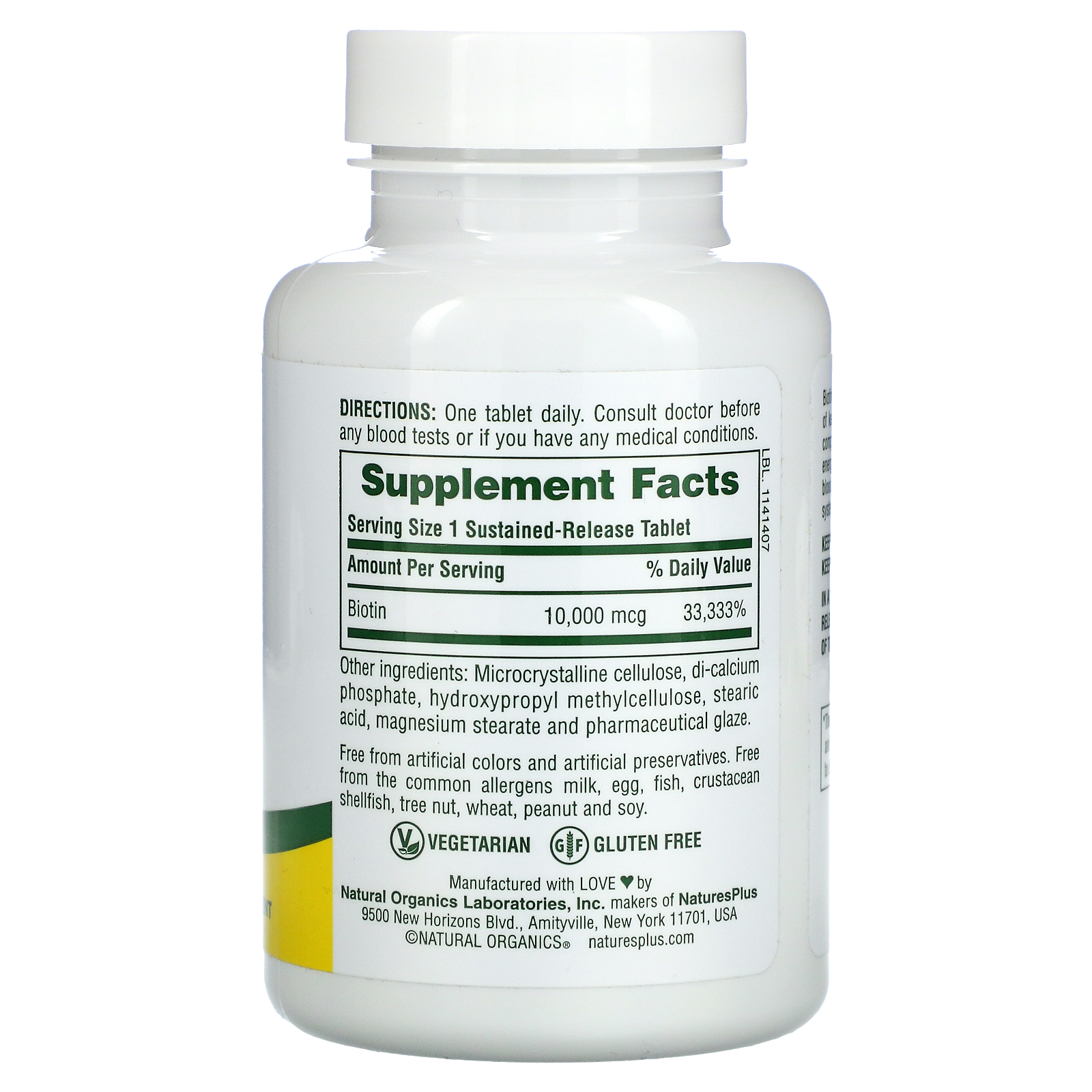 Nature’s Plus Biotin, Sustained Release, 10,000 mcg, 90 Tablets
