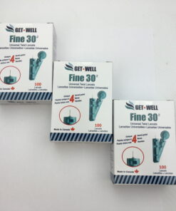 GET•WELL Fine 30g Universal Twist Lancets – Made in Canada ! Unique Quad Bevel Tip Offers Quick Healing & Less Pain ! 3 Boxes (300 Lancets)