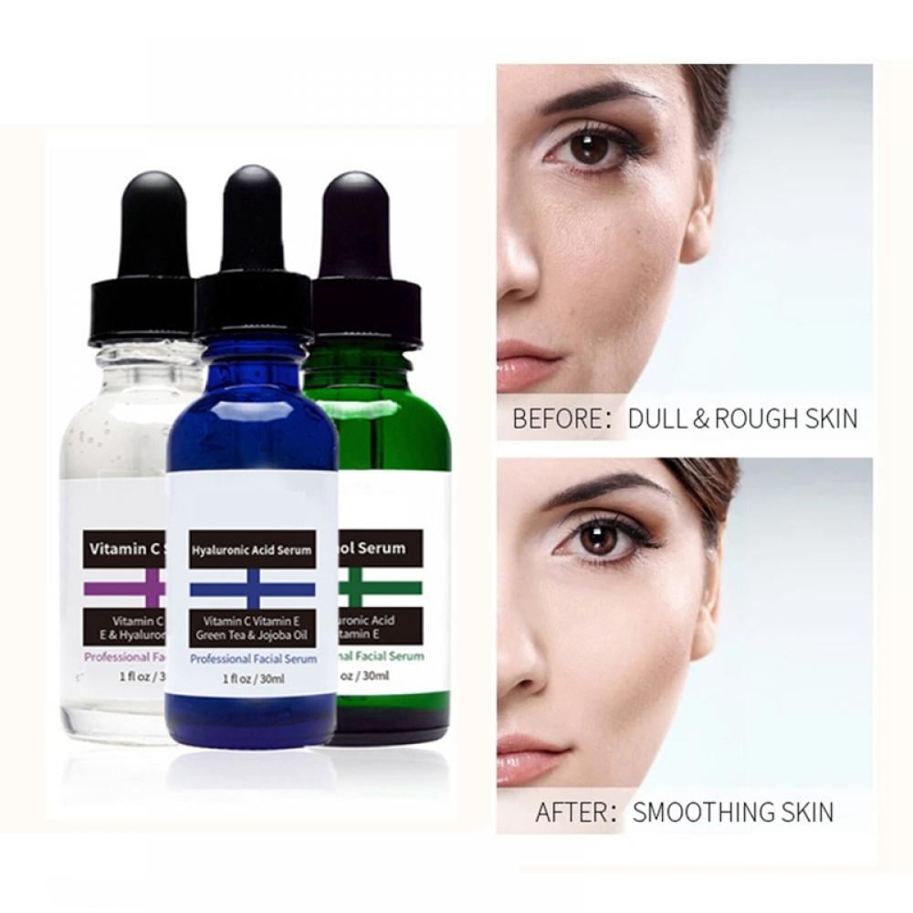 3pcs 30ml Face Serum Gift Set Vitamin C Hyaluronic Acid 2.5% Retinol Serum Moisturizing Whitening Anti-aging